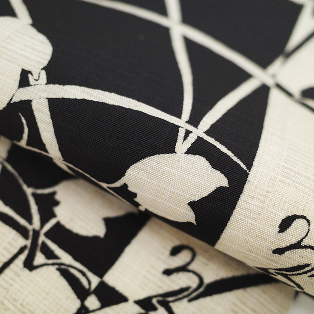 市松に葉や実のシルエットが染められた素敵なデザイン です。