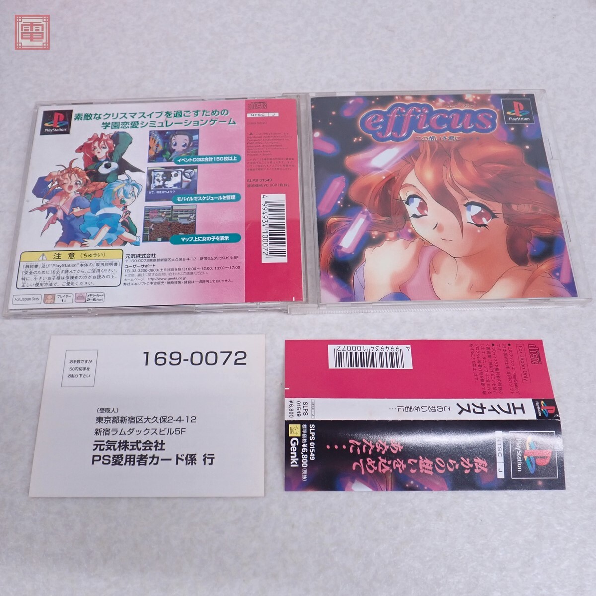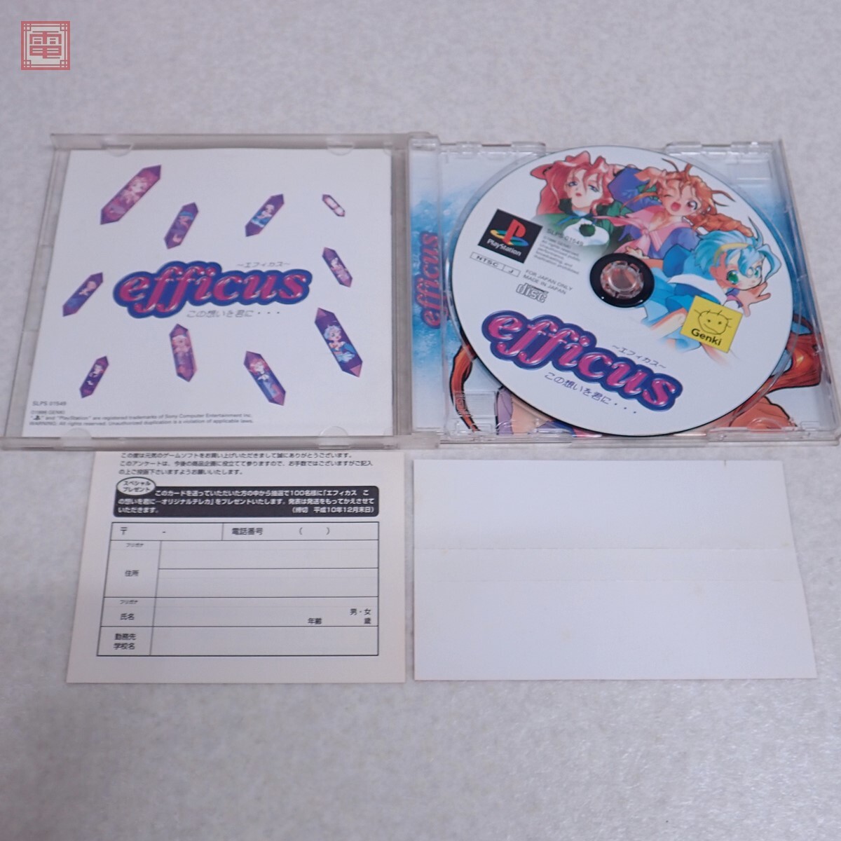 動作保証品 PS エフィカス 箱説帯ハガキ付 こちらの商品は動作保証品となりますので、一週間の動作保証をお付けします。 ■スレ、キズ、汚れ、イタミ、ヤケなどがあります。 ■画像、記載以外のダメージがある可能性があります。予めご了承ください。 ■写真のものが全てです。付属物の有無や状態については写真からご判断ください。 ■チェックに使用したモニターやチェック機器等は、特に表記がない限りは付属いたしません。 ■商品到着後、当店の保証期間中は、商品及び箱や取説、付属品などを1つでも廃棄や破損をしないようにお願い致します。廃棄や破損をした場合、商品に問題があった場合でも対応や返金などの対処ができなくなります。 | |||
