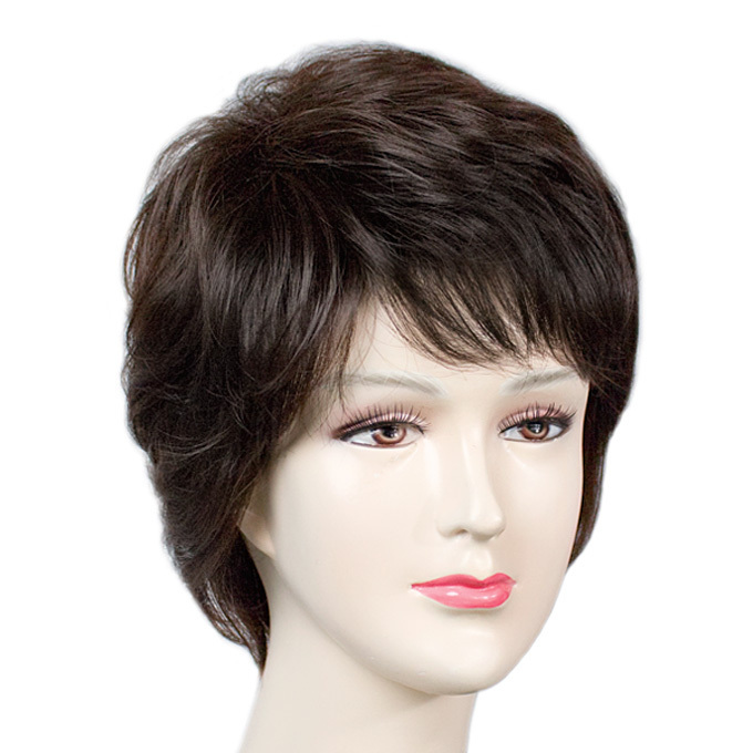 ウィッグ ショート フルウィッグ 女性 ミセス レディース 医療用ウィッグにも カール 全かつら 黒に近い茶 67695-02c1