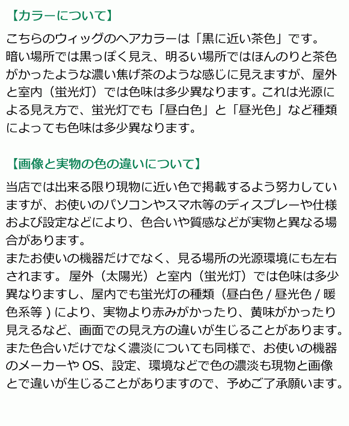 ● ウィッグ毛:人毛の自然さに近づけた最新の人工毛を使用しています。
