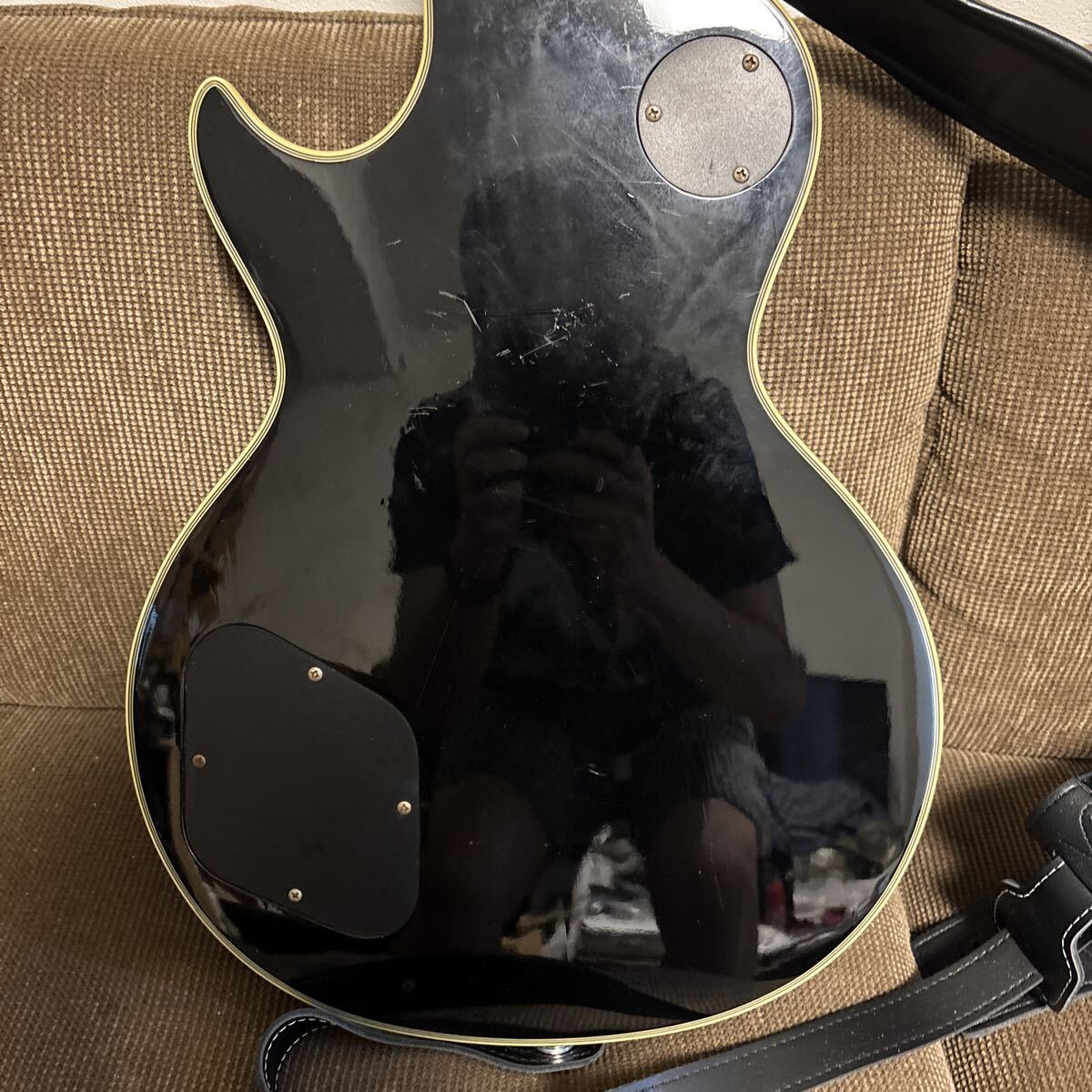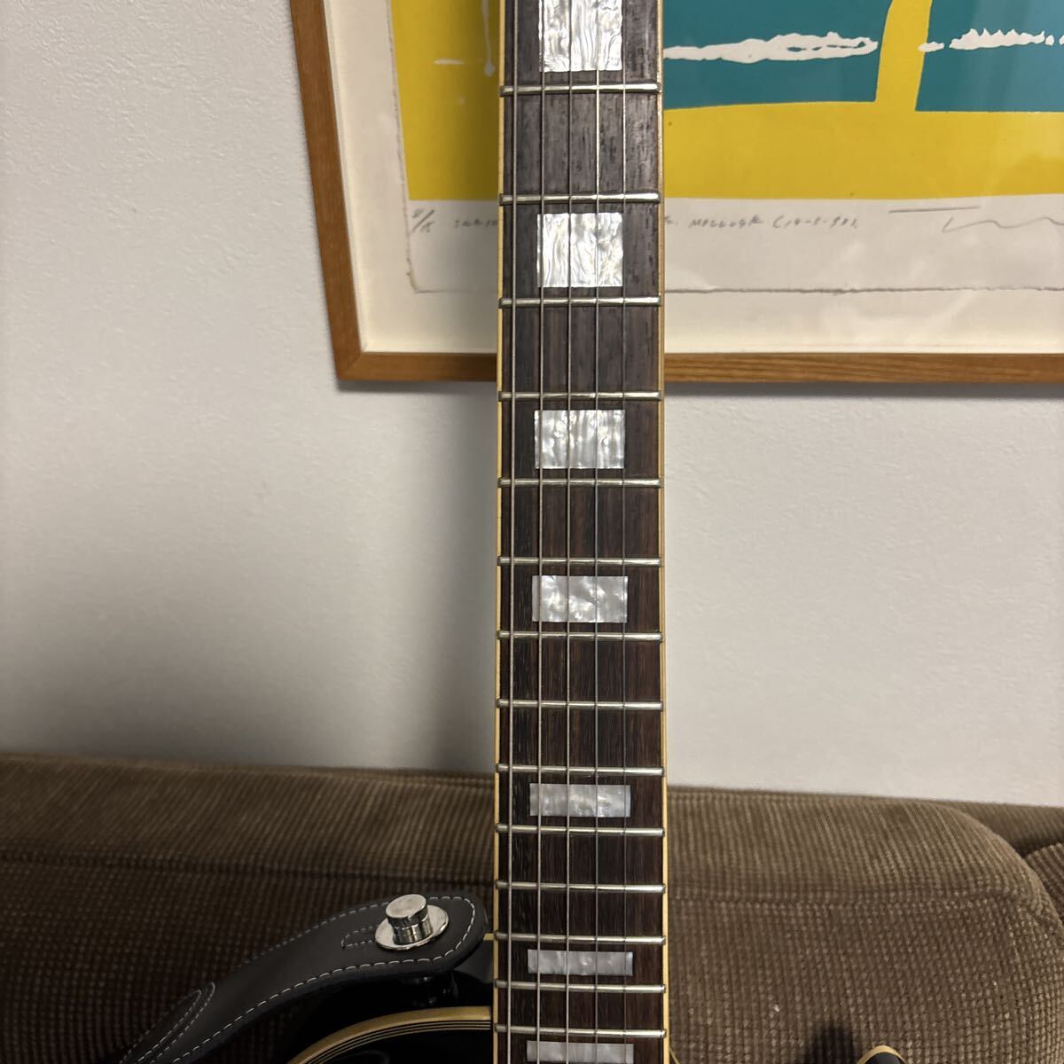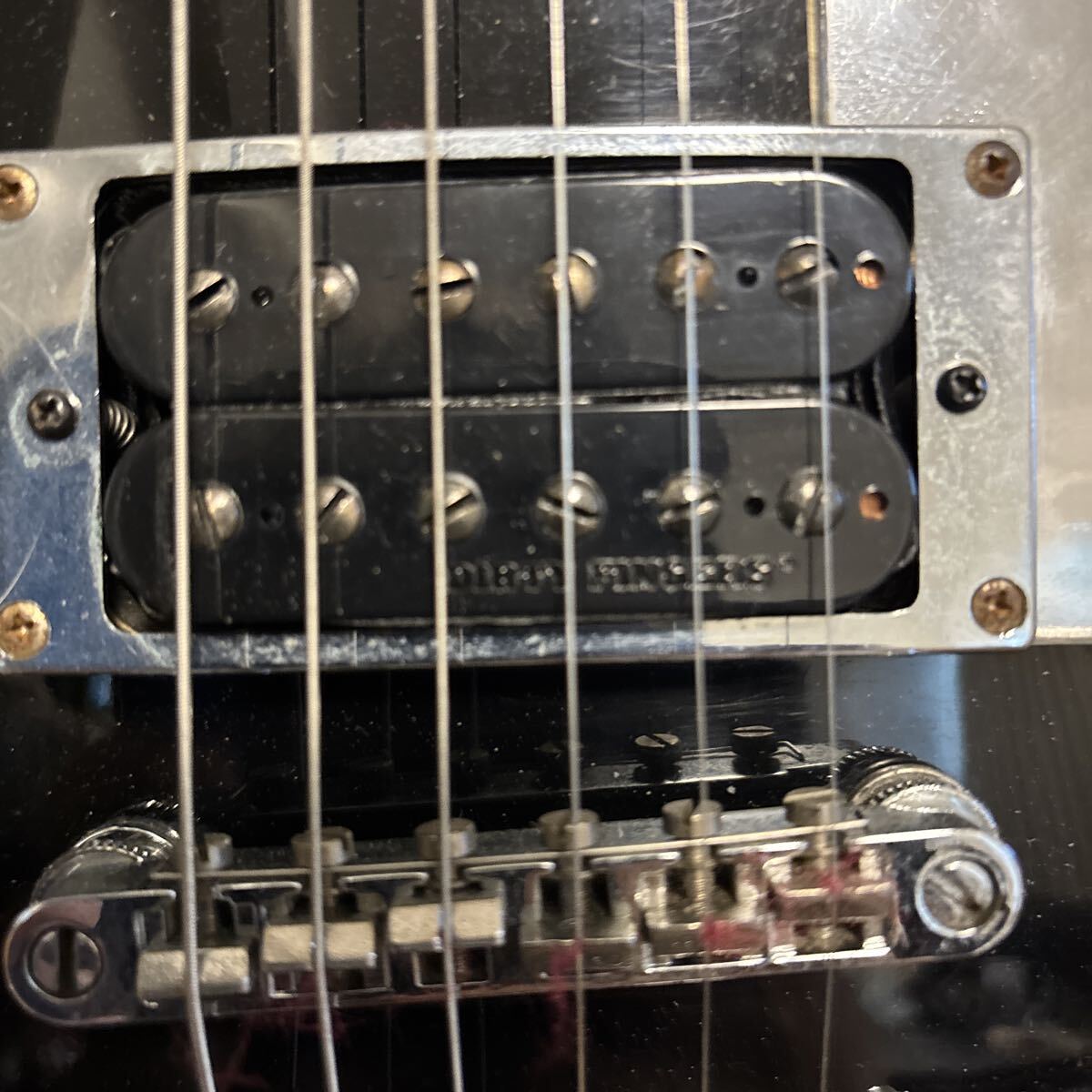 交換箇所はストラップピンがロック式に、ブリッジ側のピックアップを本家同様のギブソンダーティーフィンガーズ(珍しいブラックボビン)にしてあります。