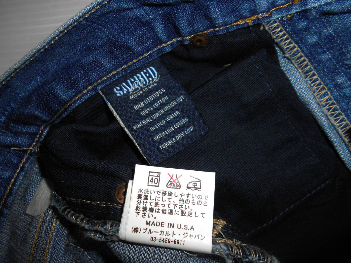 超美品★USA製 SACRED BLUE USED加工デニムジーンズ 30です。USA製です。 素材は綿100です。色はブルーです。ブーツカットです。