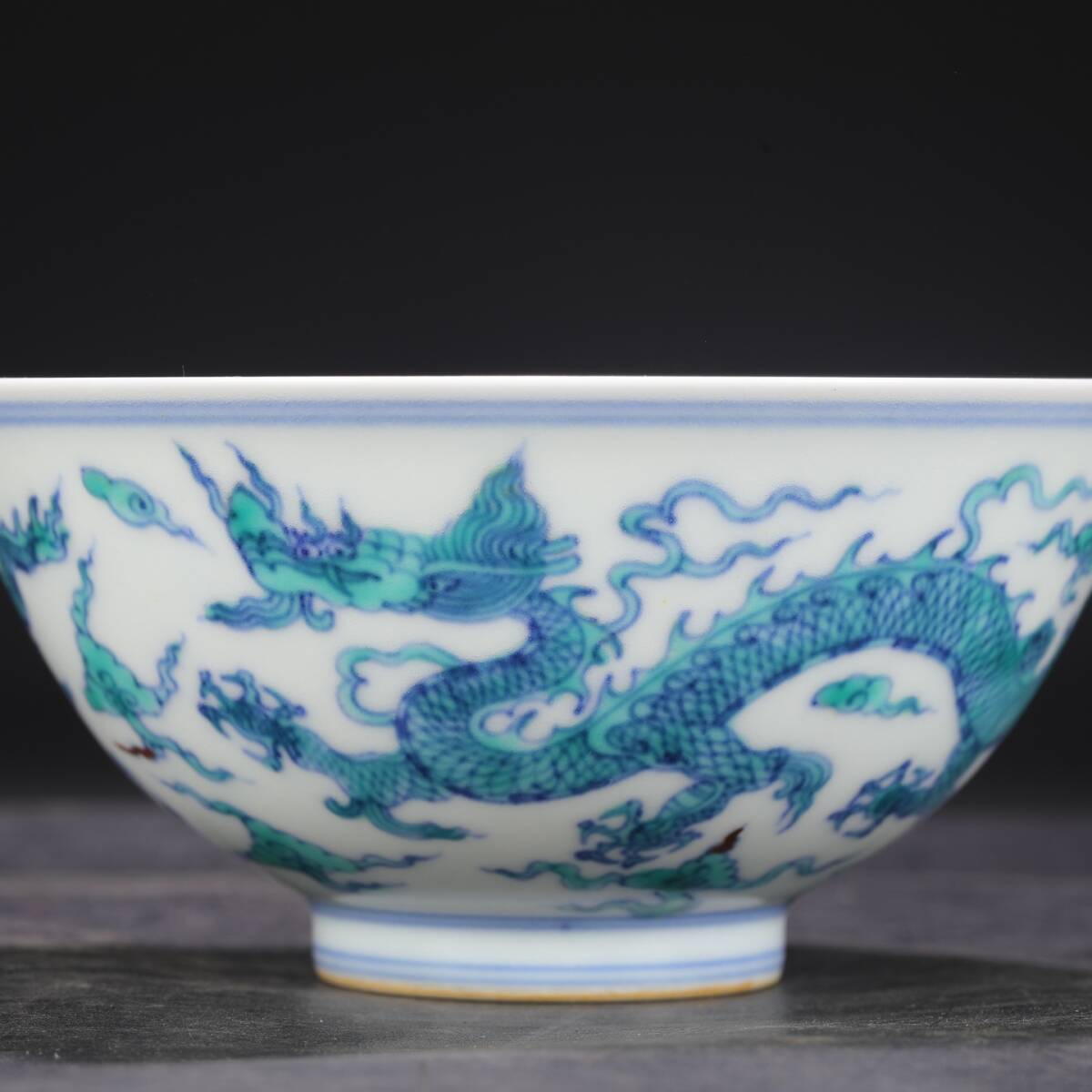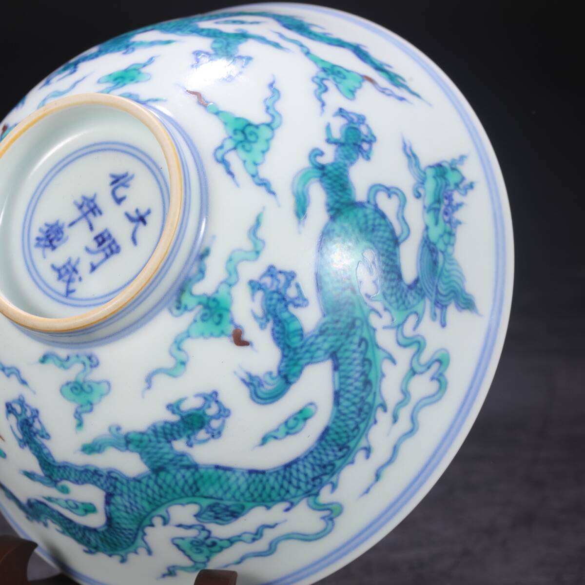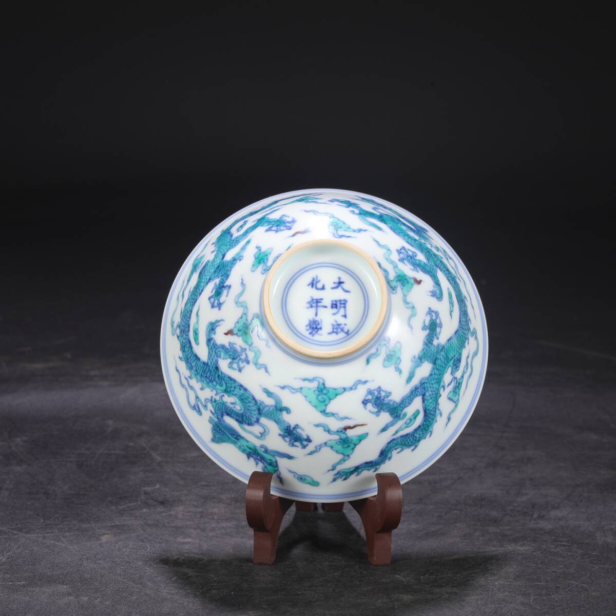 館蔵 明代 成化 斗彩 雲龍紋 大宮碗 古陶瓷器 陶藝 時代物 古置品 賞物 貴重 稀少珍品 中国古美術 古美味 蔵出