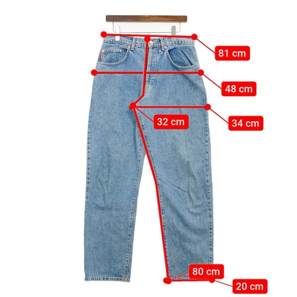 | 実寸法 | ボトムス実寸 ウエスト:81cm 股上:32cm 股下:80cm もも幅:34cm 裾幅:20cm |