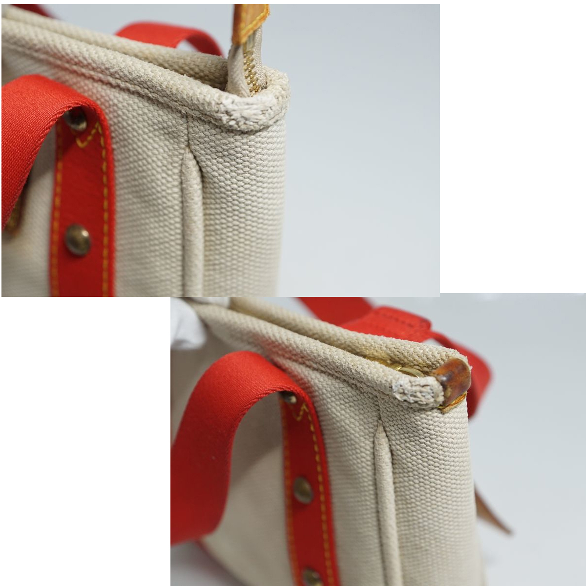 金具のメッキ剥げ・コキズがございます。ファスナーは動作良好です。