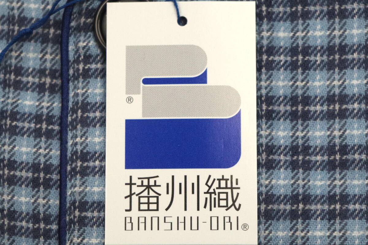 紙タグのロゴタイプはこの地域で考案され、糸染めされ、織られ、加工されたものの中で、一定の品質基準に達したもののみを「播州織」と認定し、このブランドを表示しています。(株)三峰扱い品の日本製です。