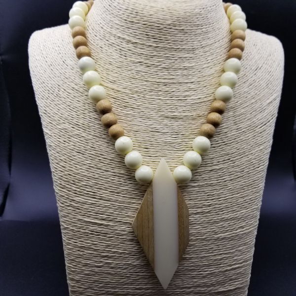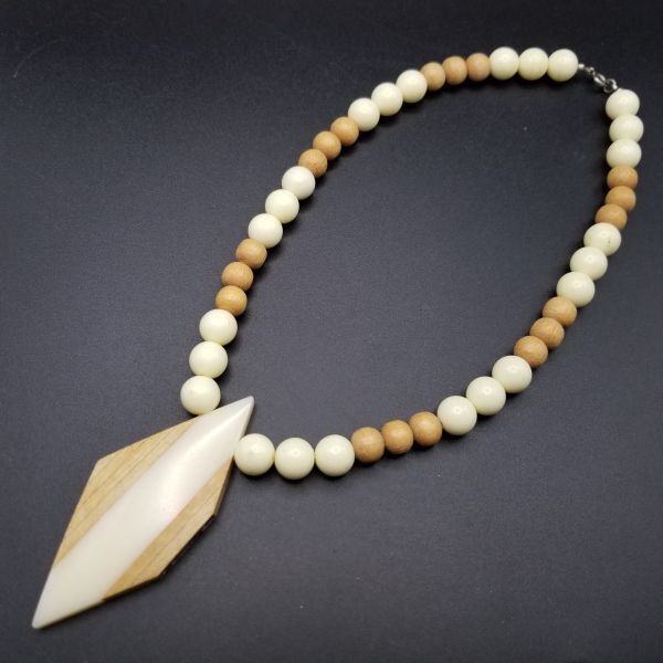 エスニック リゾートスタイル ヴィンテージ ネックレス 木目ビーズ 大ぶりペンダント アールデコ レトロ WOOD 木使用 AJK22