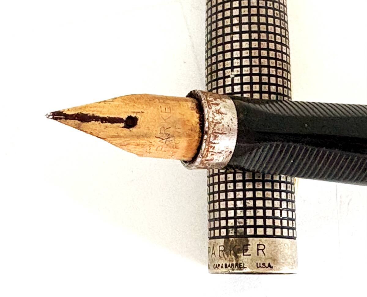 【PARKER・パーカー】 万年筆 スターリング シルバー ペン先14K刻印 筆記用具 筆記未確認現状品 本体のみ