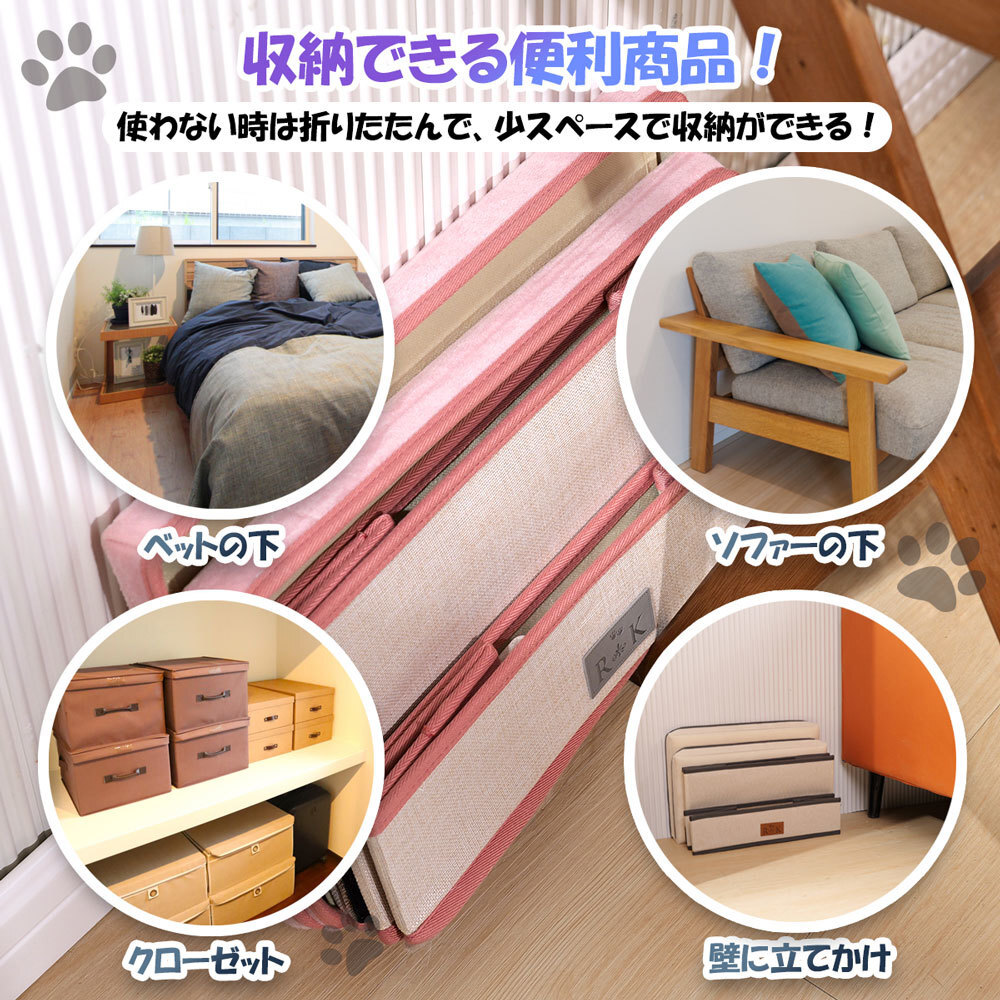 | 注意事項 | ※収納型の為、重量は軽く製造されております。滑りやすい場合もございます為ペット様が上り下りをする前に中に収納いただき、ある程度の重さを確保してからご使用ください。 ・ペット以外でのご使用はお控ください。 ・製品の上に耐荷重以上の重たい物を乗せたり、過度な衝撃は与えないでください。 ・使わないときは底板を分離し、折りたたんで保管してください。 ・湿度の高い所や、火気の近くでの保管はお控ください。 (製品の変形及び、破損の原因になります。) ・ペットがみつかないようご注意ください。 (みついた部分の製品破損により誤飲してしまう恐れがあります。) ・直射日光への長時間の露出は変色の恐れがございます。 ・サイズはご購入前に必ずご確認いただき、ペットの体格に合う商品をお買い求めください。 ・衛生面上、商品開封後の返品は不可となります。 |