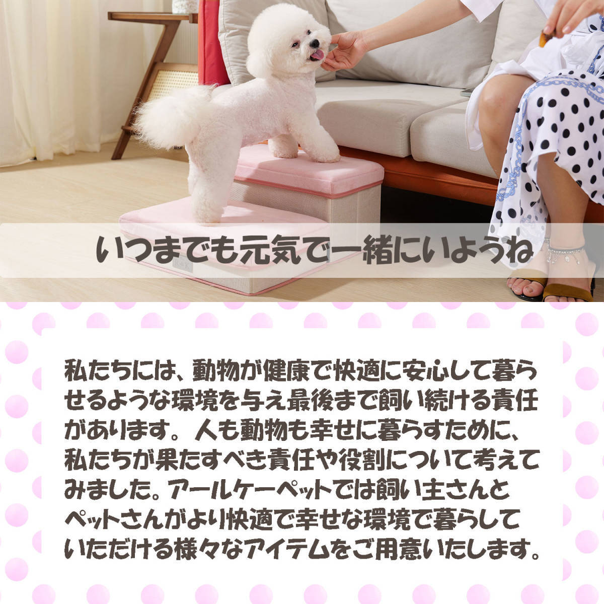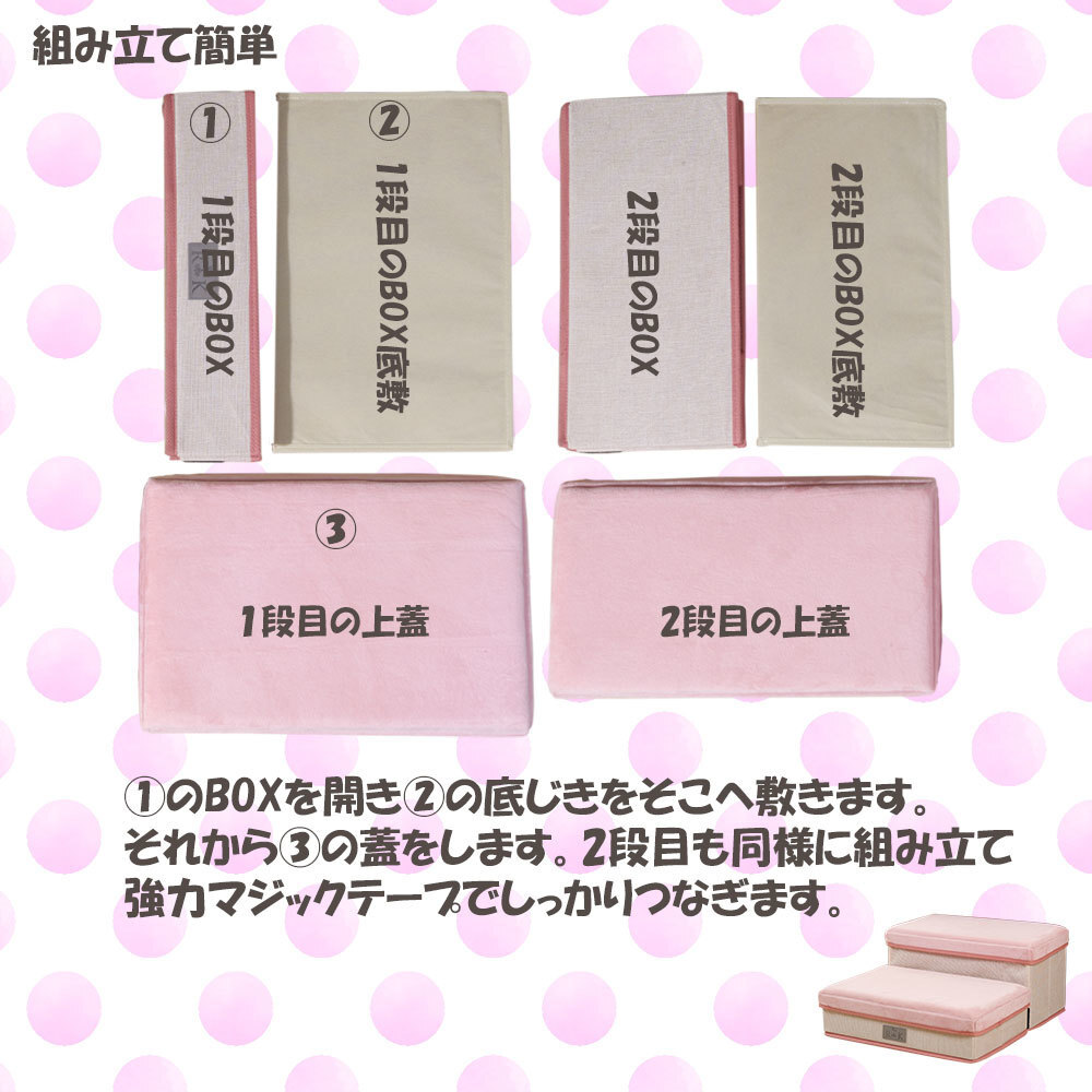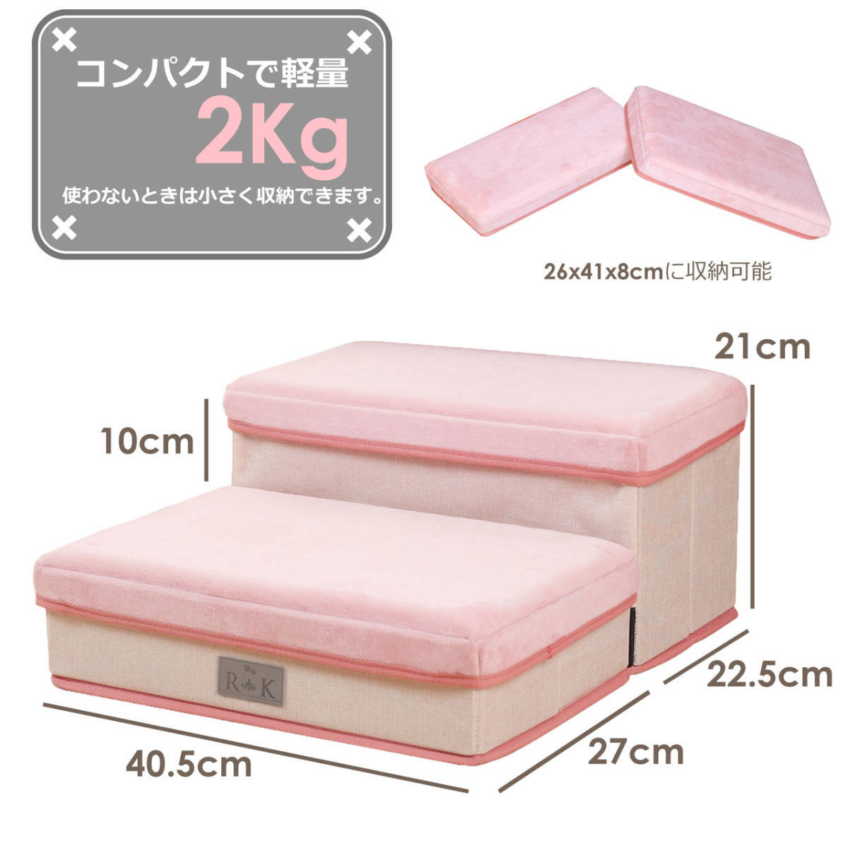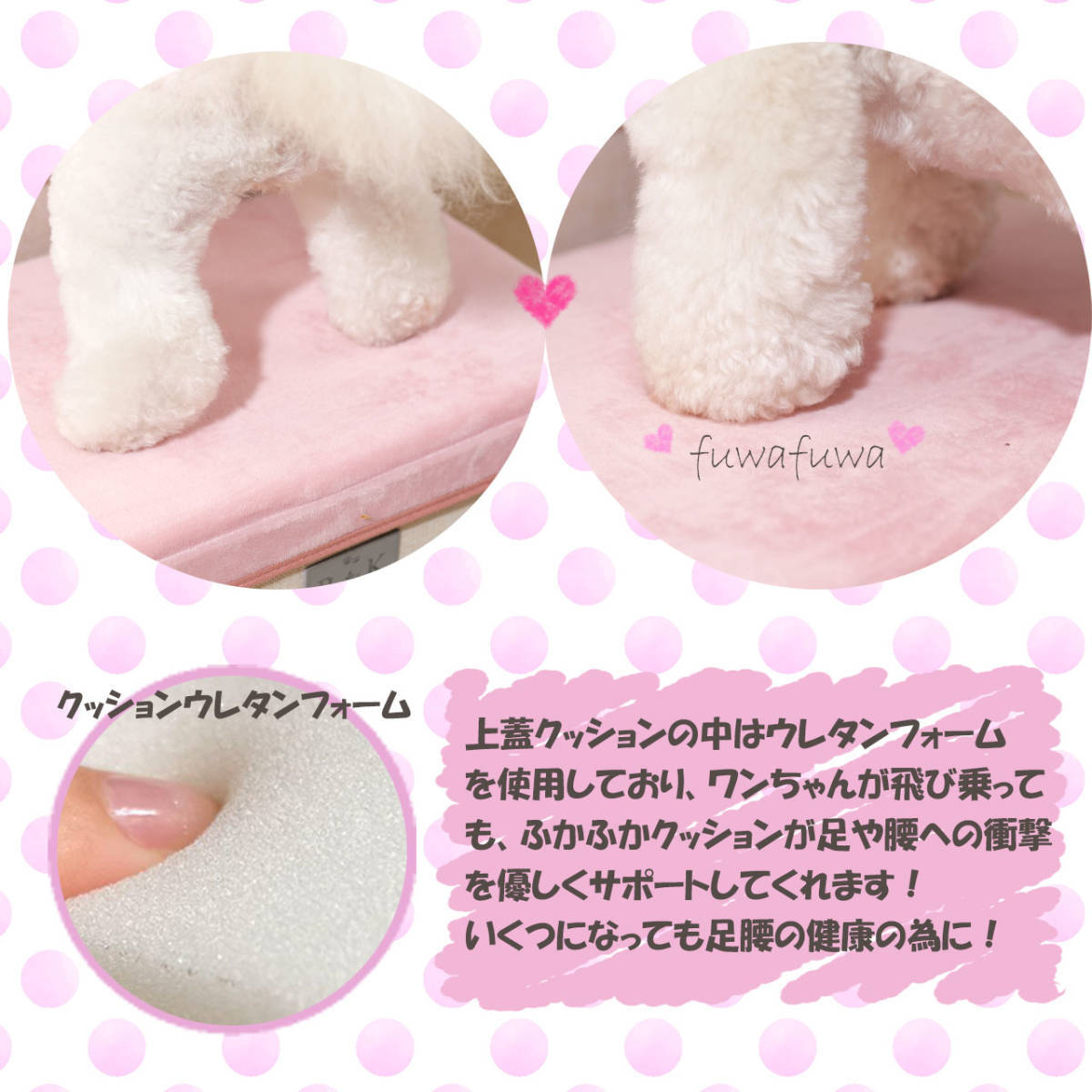 | 使用用途 | ★ドッグステップ好評の為、ベビー色入荷してみました!★ ワンちゃんがソファーなどに上る際、足腰に大きな負担がかかります。少しでもワンちゃんの健康を守るべく、是非ご検討くださいませ! (特徴) ●2段分(2箱)収納型のドッグステップで、ワンちゃんの服や小物、飼い主様の荷物など、スペースを活用して収納いただけます。 ●チップウレタンと違い、1枚物のウレタンシートを使用している為、適度な硬さとクッション性で足腰の負担を軽減します。 ●1段目が奥行25cmと幅広サイズになっており、階段の勾配が緩やか。 ●クッション性がありワンちゃんの1ステップ1ステップ足の負担を軽減! ●コンパクトサイズで場所をとりません。 ●使わないときは折り畳んでおく事も可能です。 ●軽量型で組み立てや折り畳みも簡単! |