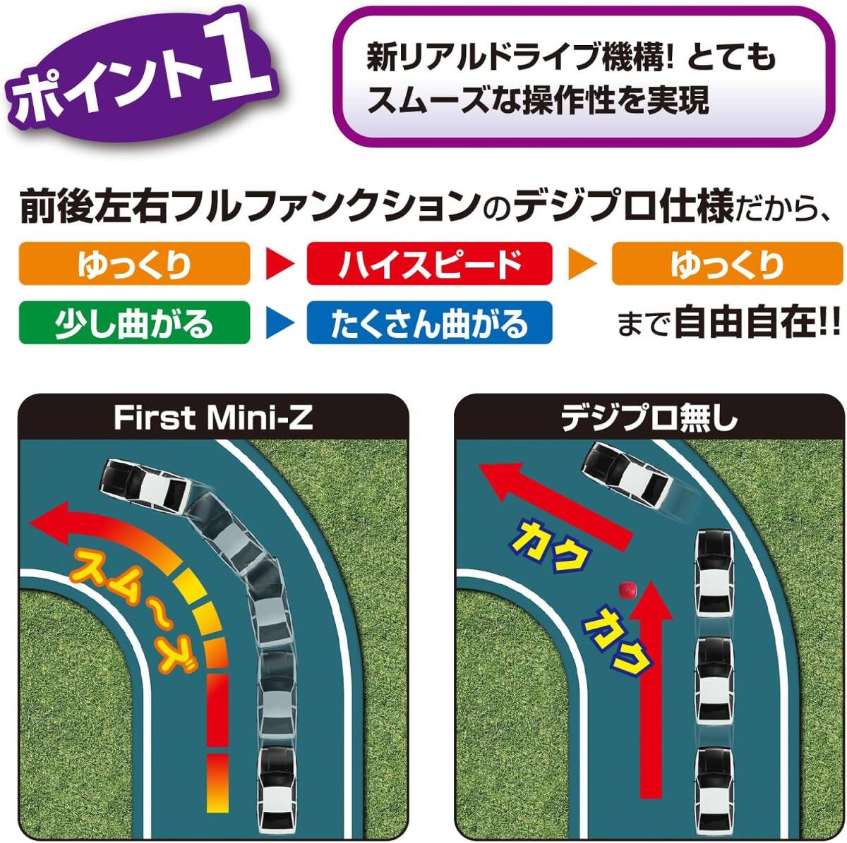ファーストミニッツ人気車種、スプリンタートレノ新登場!! 1/28サイズのリアルさを追求した手のひらサイズ! 観賞用として見た目のクオリティにも自信あり! 『新リアルドライブ機構』で 前後左右フルファンクションの デジプロ仕様で自由自在!! 『モード切り替え』上達にあわせて切替! トレーニングモード時速7㎞/h ・ レースモード時速10㎞/h。 『自宅でタイムアタック』 ストップウォッチ付きコントローラーで タイムを競える!! 最大12台同時走行可能で、 家族で、仲間で、勝負しよう!