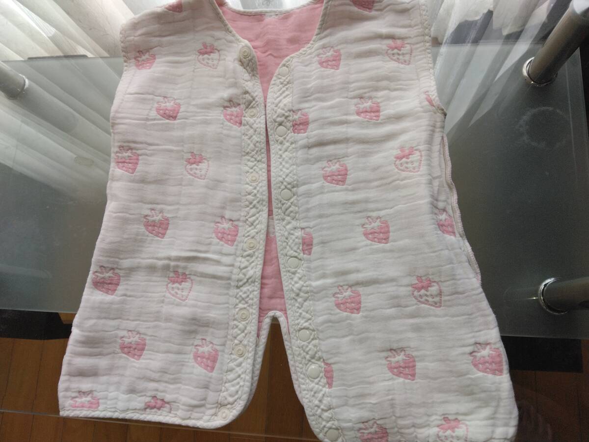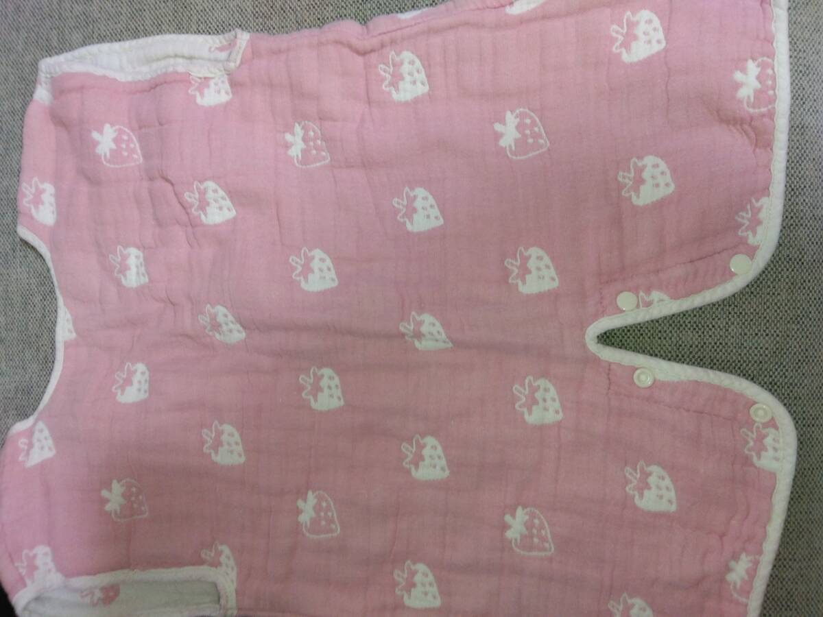 薄いピンク色にイチゴ柄、前ボタン(お子様でも留めれます)