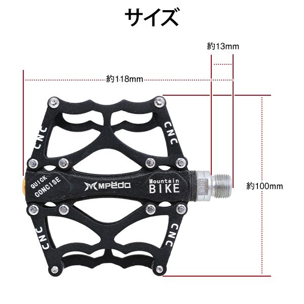 ブラック 黒 アルミペダル フラットペダル 左右 2個 セット 軽量 自転車 CNC ロードバイク クロスバイク マウンテンバイク などに