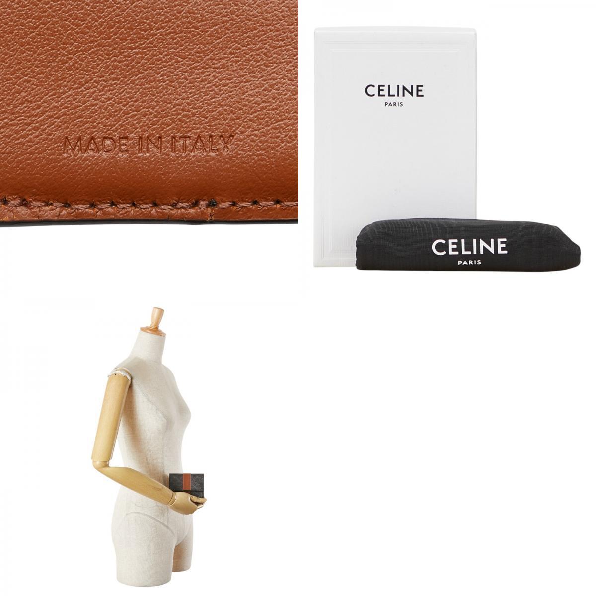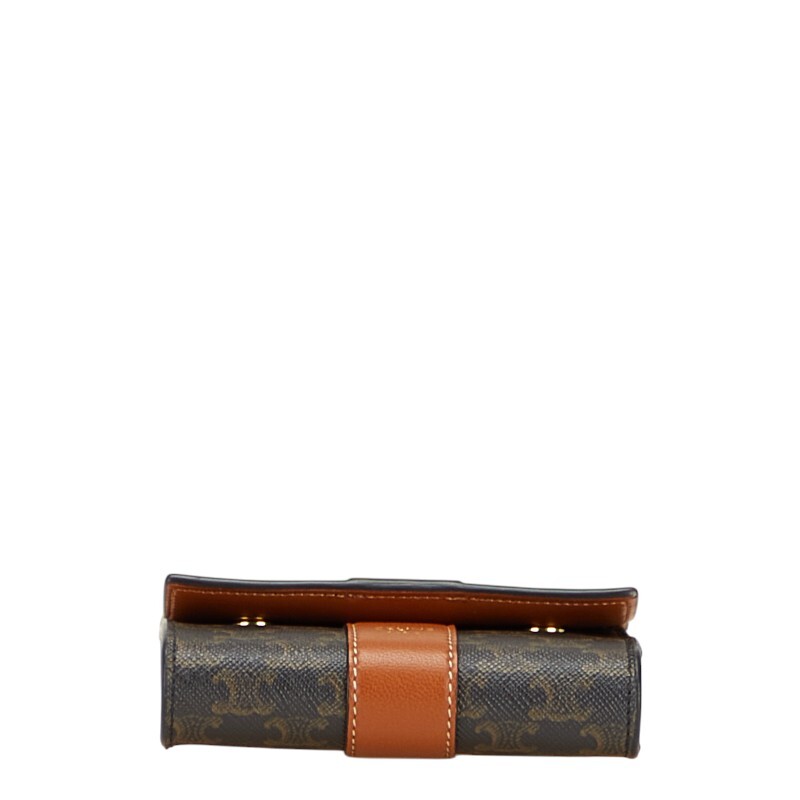 セリーヌ トリオンフ 三つ折り財布 ブラック ブラウン PVC レザー レディース CELINE 【中古】