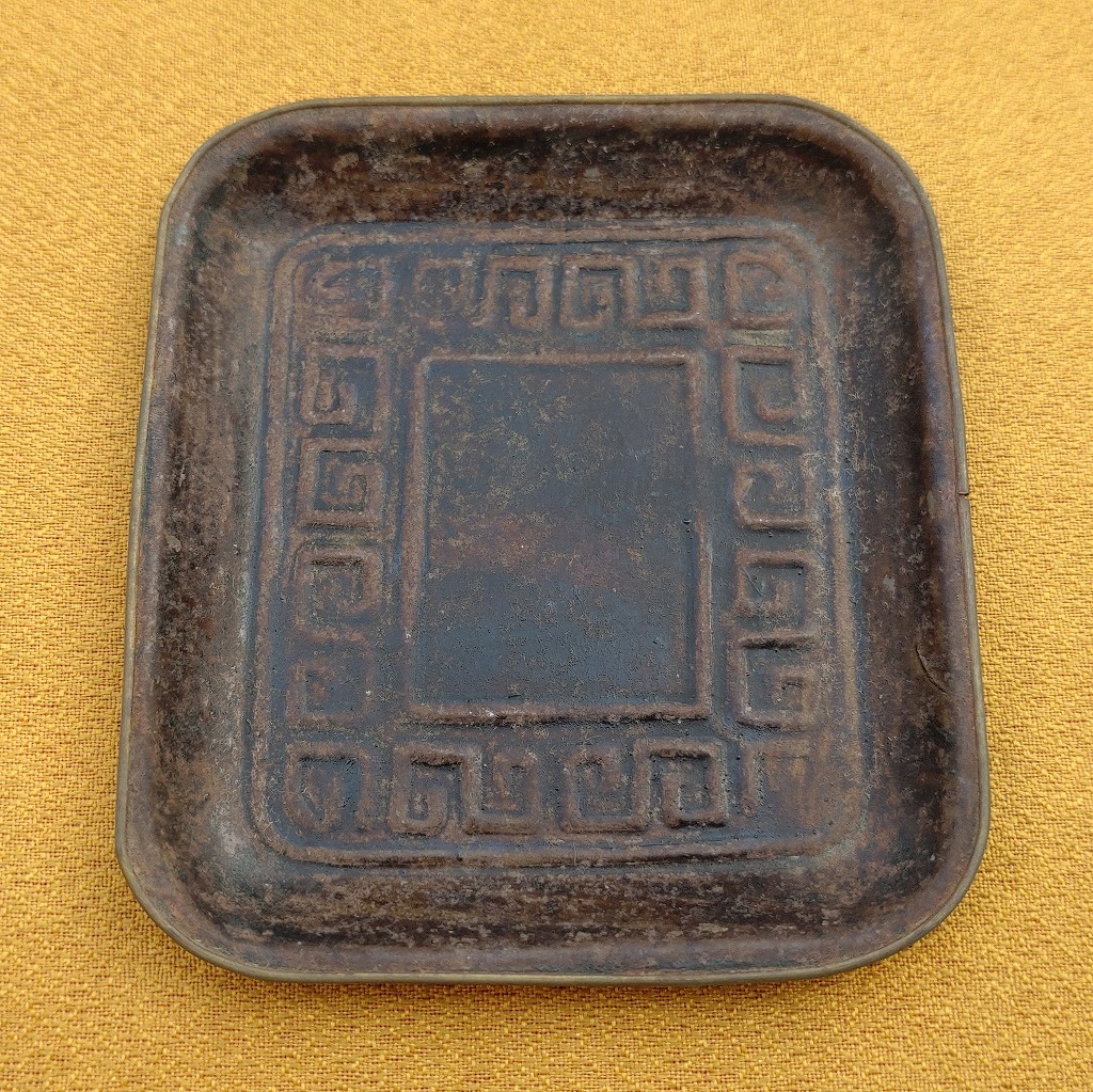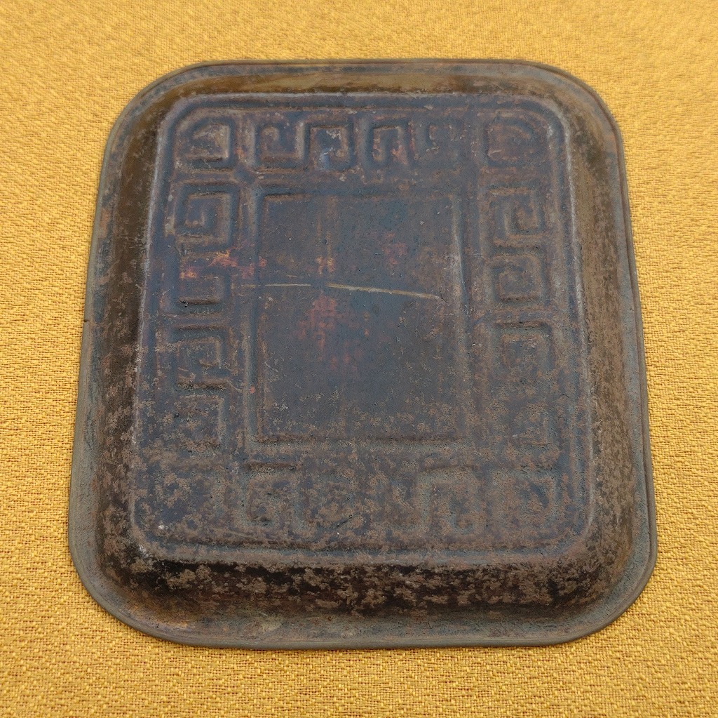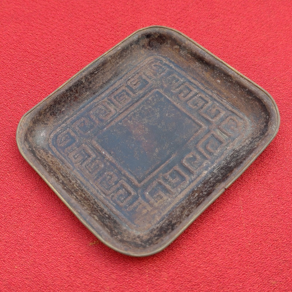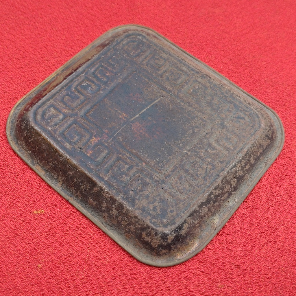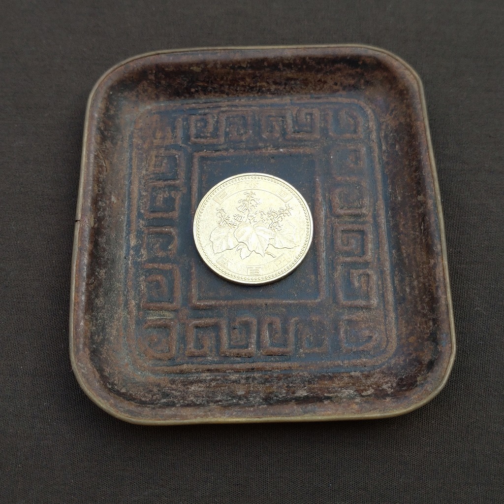 古い茶托 鉄製 古鉄 菓子皿 鉄皿 角皿 約85×77㎜ レトロ 古物 【6328】