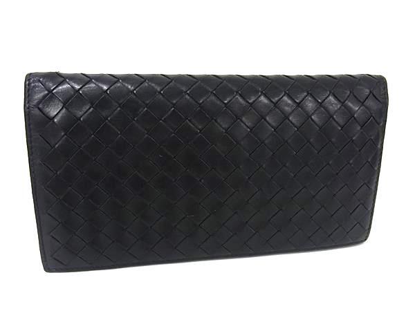 1円 BOTTEGA VENETA ボッテガヴェネタ イントレチャート レザー 二つ折り 長財布 ウォレット 小銭入れ 札入れ ブラック系 FM9804