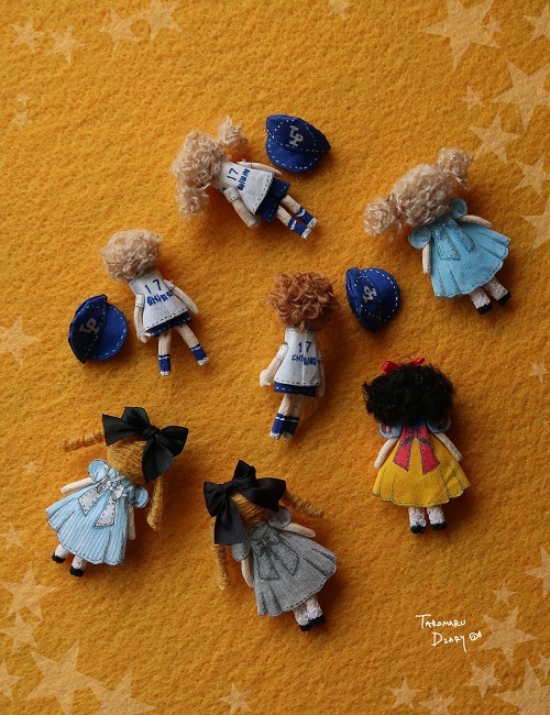 人形は、綿ジャージや、レース、布、フェルト等を使用して制作いたしました。