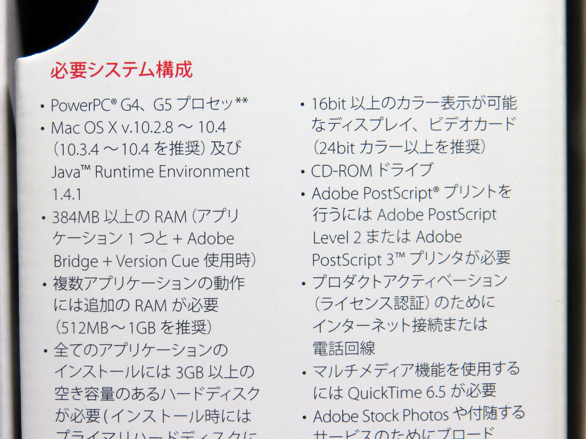 | 商品説明 | 【品 物】 Adobe Creative Suite 2 Standard 日本語版 Mac版 シリアル番号付 ・デザインガイド付属(冊子) 【状 態】 ■USED品 ・読み込み面にキズ等はございません ■インストール確認等は一切行っておりません ■保証や対応は一切ございません。あらかじめご了承ください ※御使用端末の環境により多少画像の表示色と実物の色に差違が生じる場合が ございますことご了承ください。 |