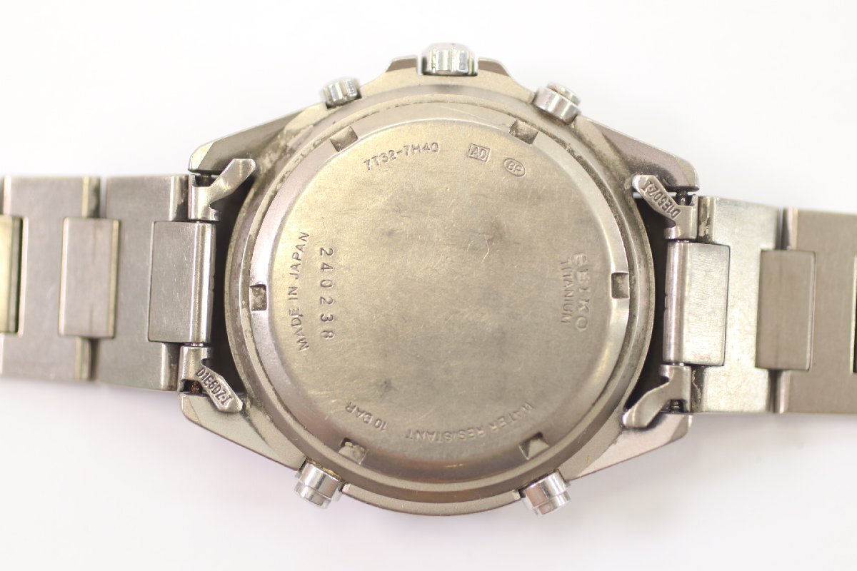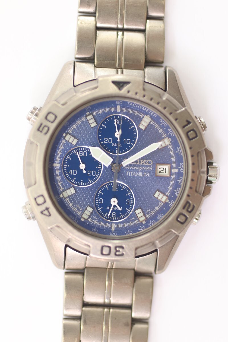 | 【ジャンク】SEIKO セイコー 7T32-7H40 クロノグラフ クォーツ デイト チタン メンズ 腕時計 青文字盤 1966-HA | |
