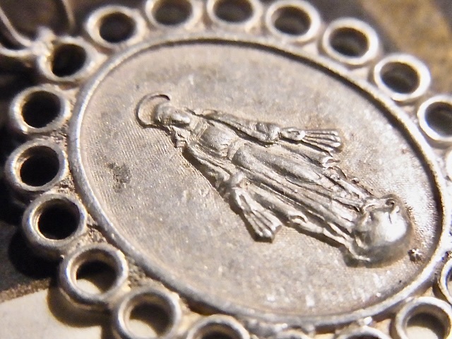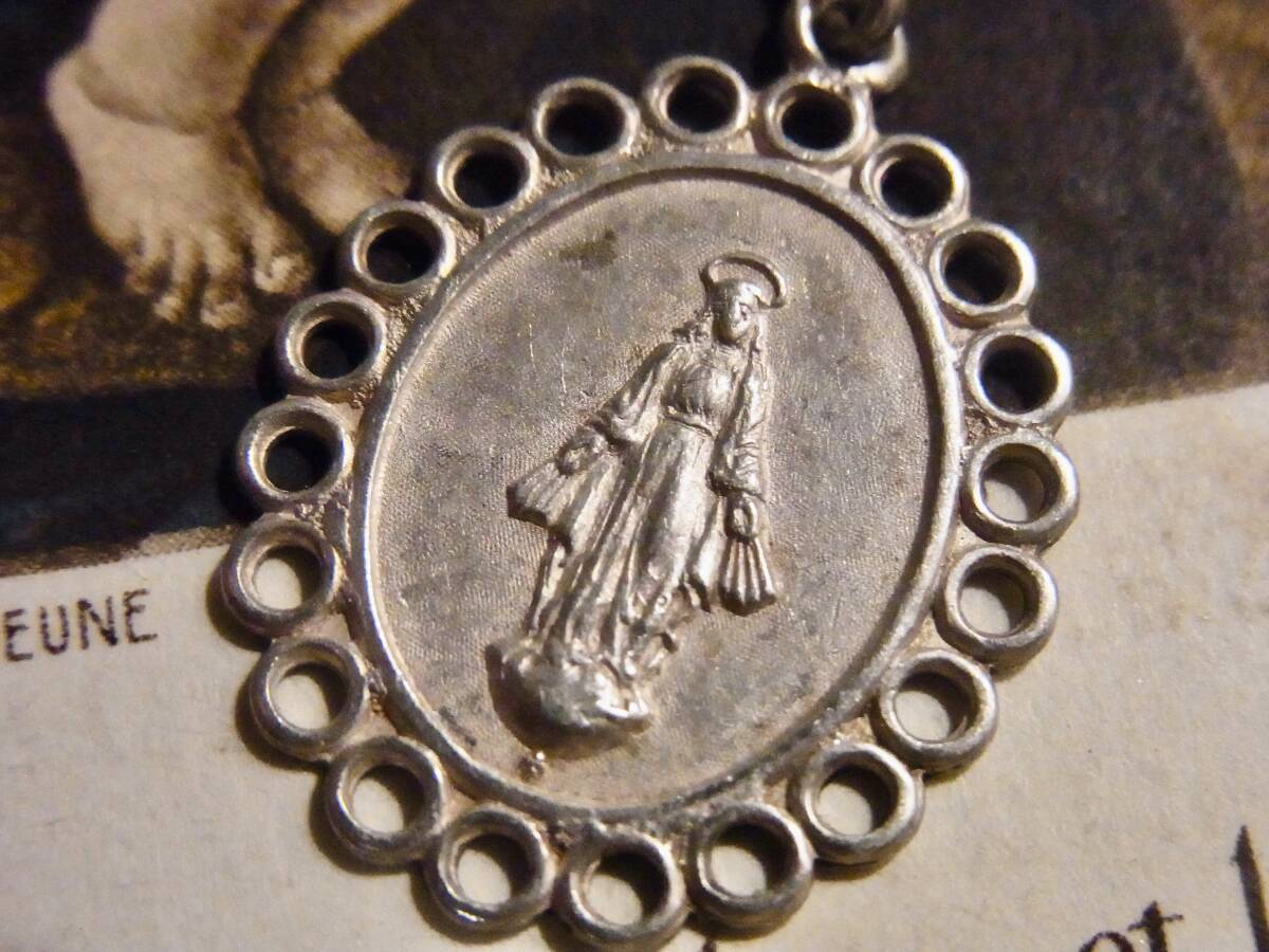 フランス アンティーク 不思議のメダイ シルバー800 無原罪の御宿り 聖母マリア 透かし彫り