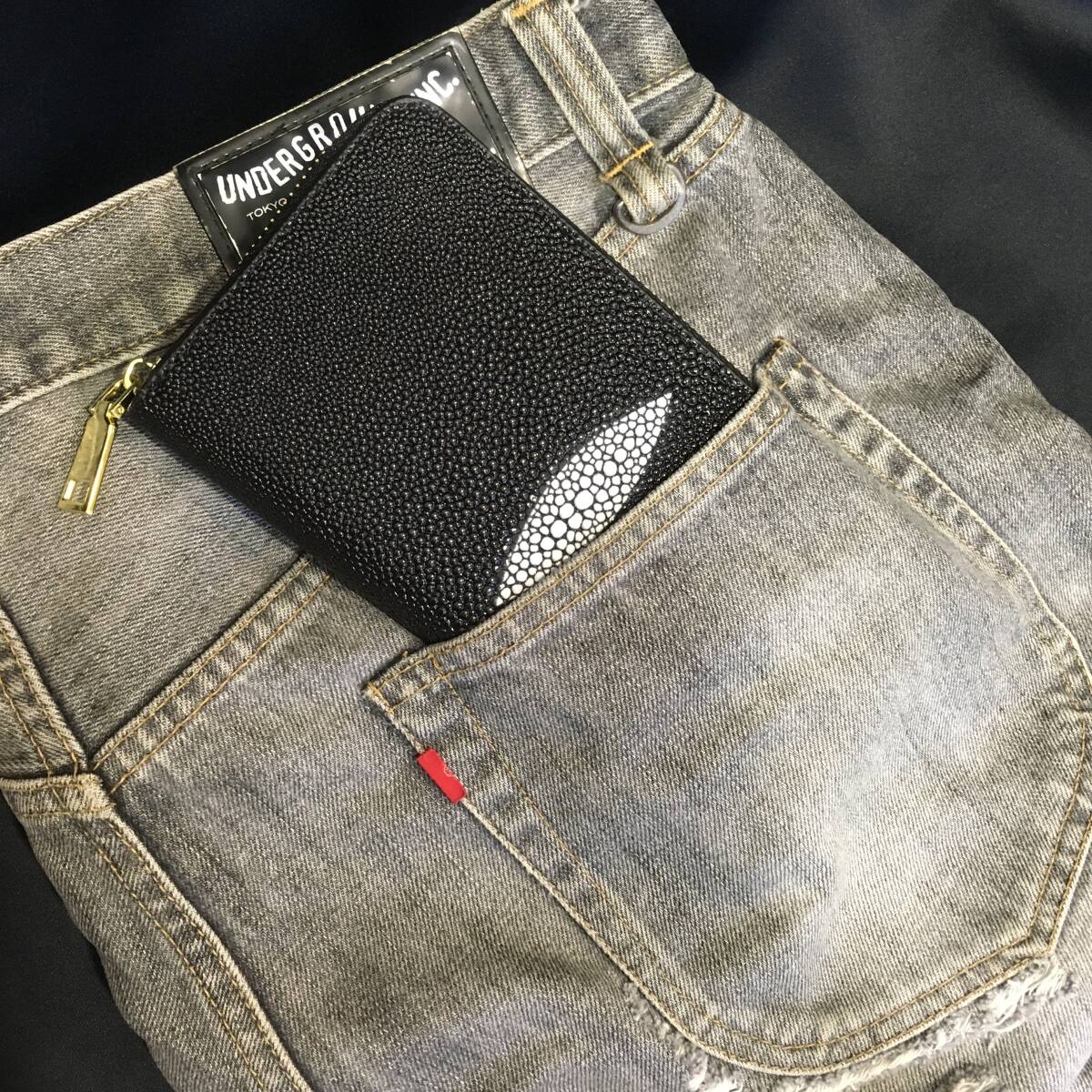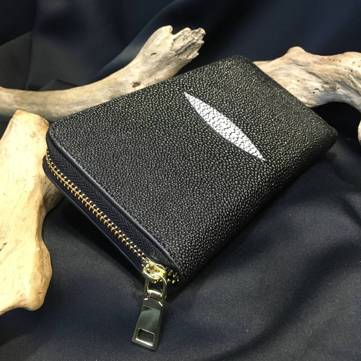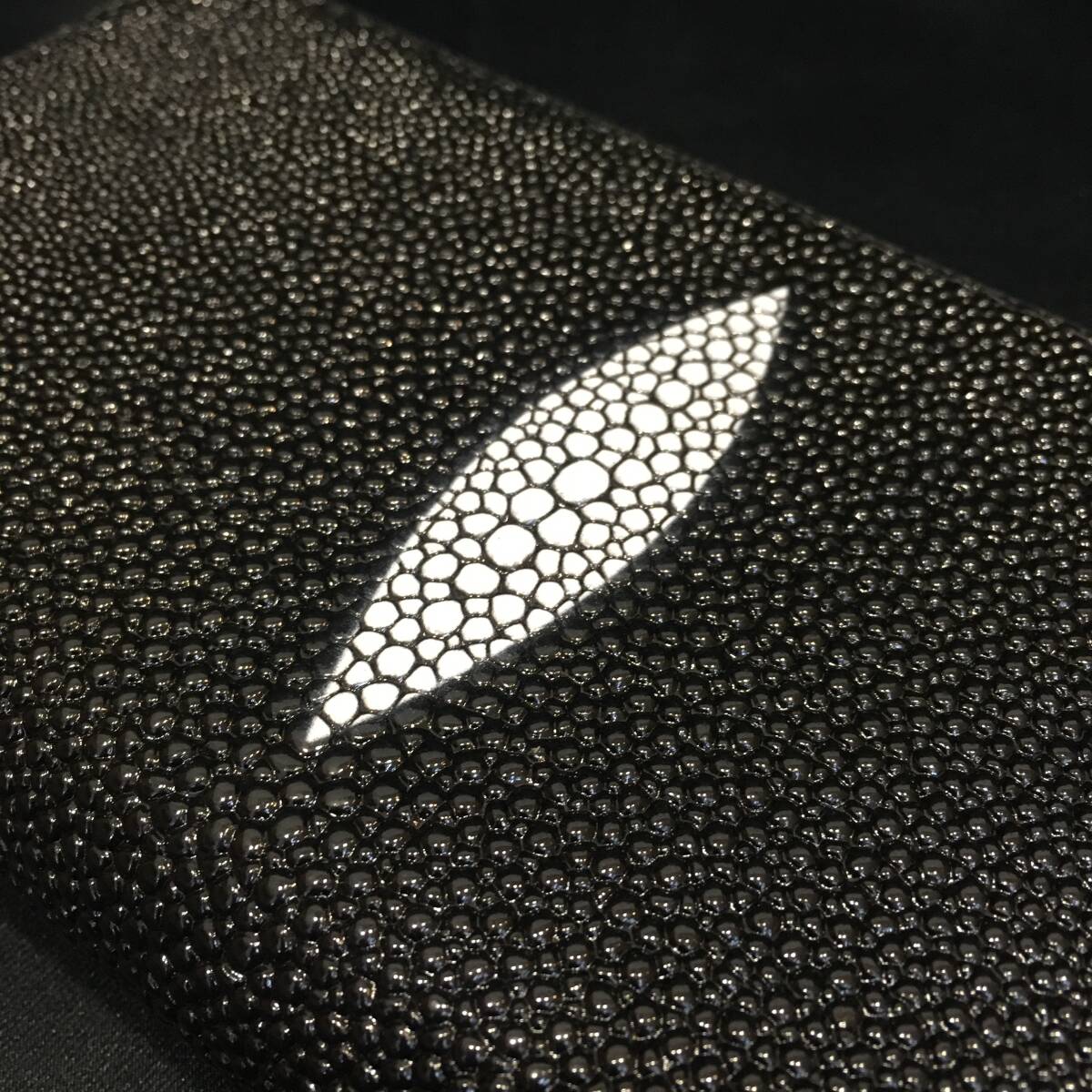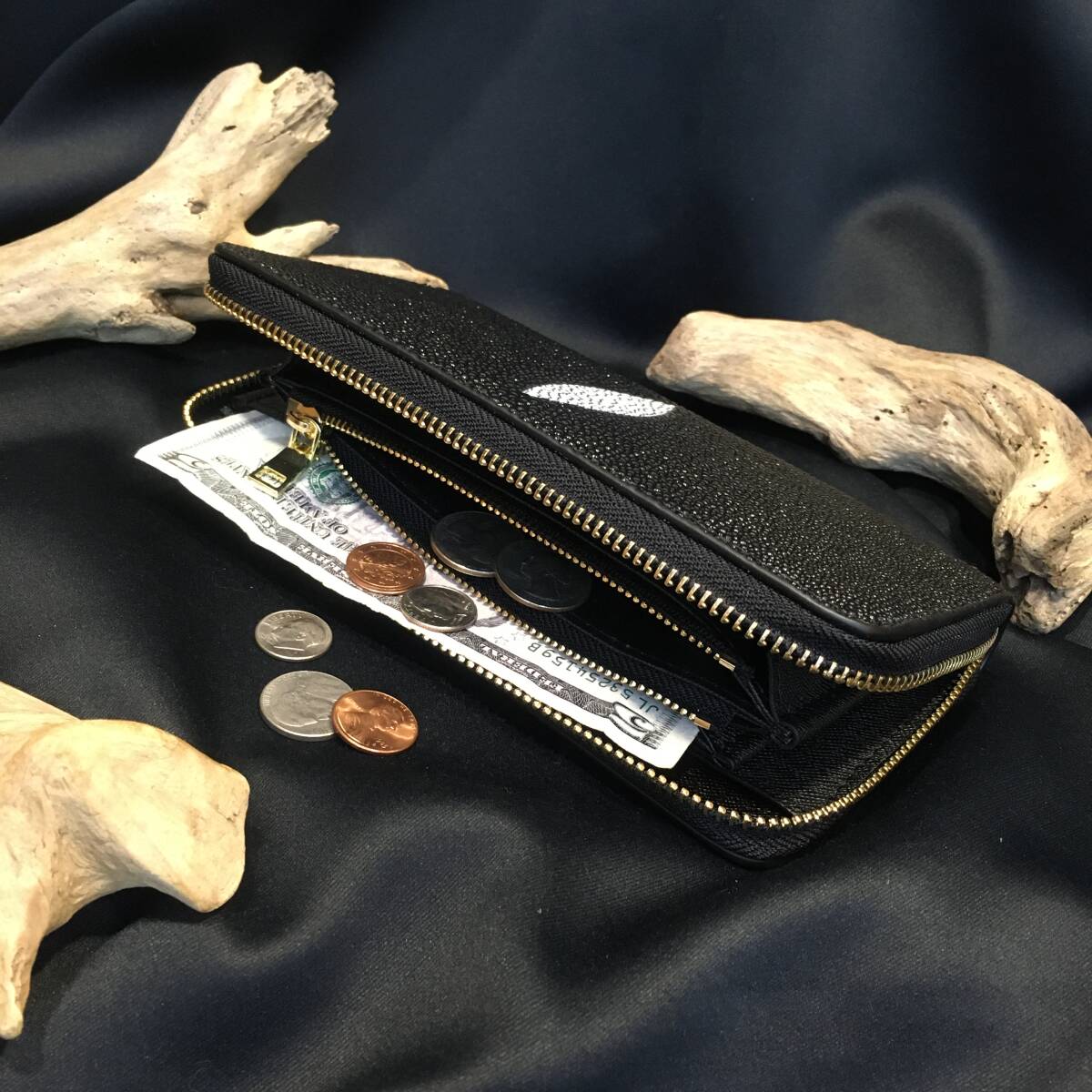 新品 本革レザー ラウンドファスナー長財布 エイ型押し メンズ ロングウォレット スティングレー スターマーク 金運 開運 ブラック 黒 95