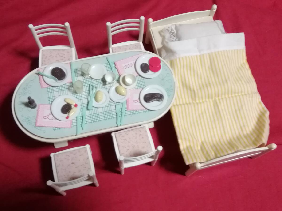 タカラ リカちゃん家具(小物) ファミリーダイニング&ベッド 昭和レトロ おもちゃ家具 中古品です。