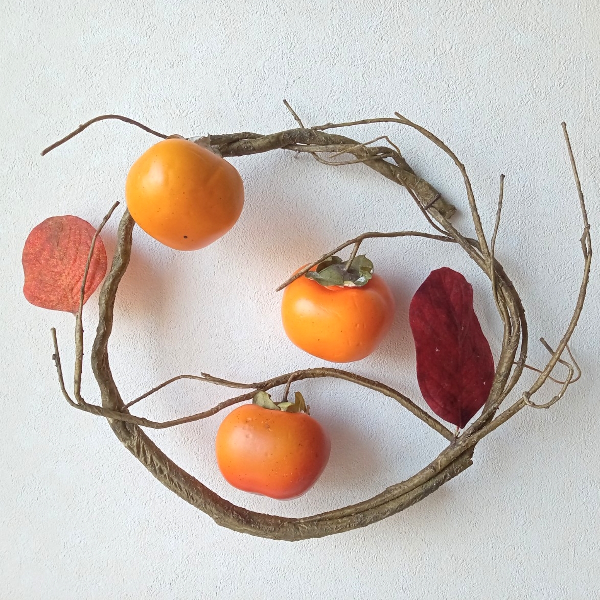 リース 柿 秋物 32x25cm 壁掛け 造花R59