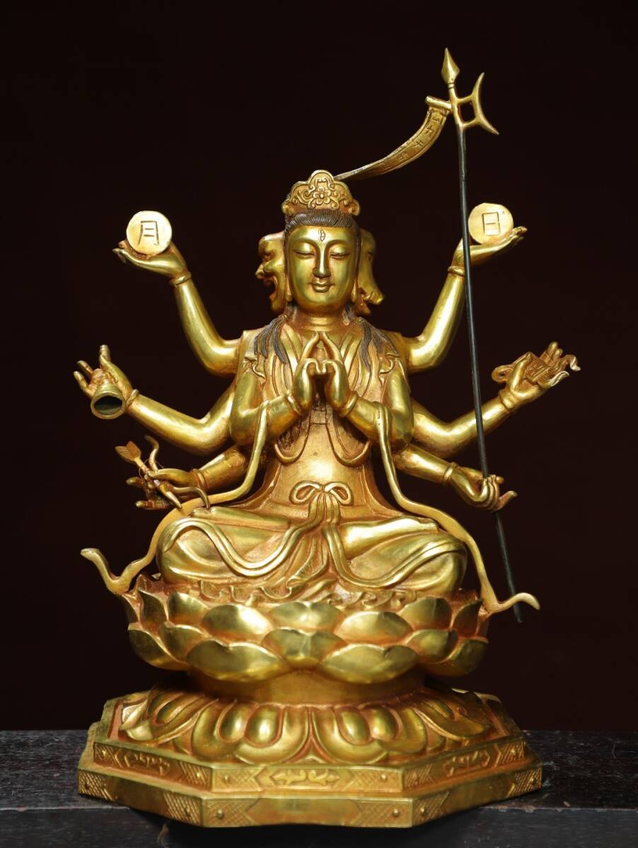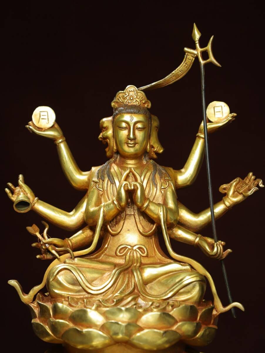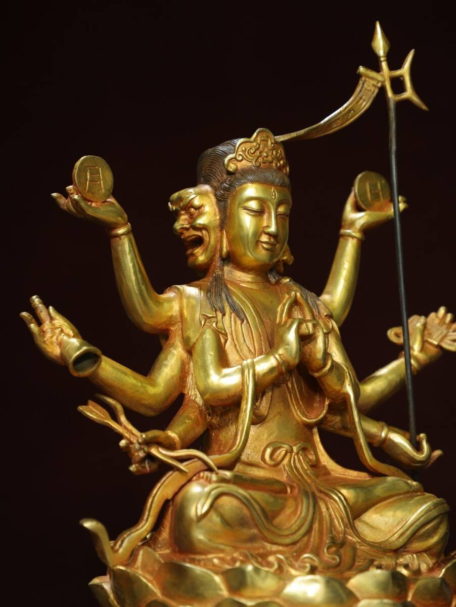 永し 明時代 古銅塗金 斗母元君 佛像 仏像 宗教 仏教古美術 極細工 古銅彫 置物擺件 古美術品 時代物 古董品 収集 旧家蔵出 中国唐物 A3