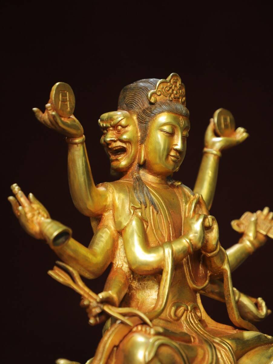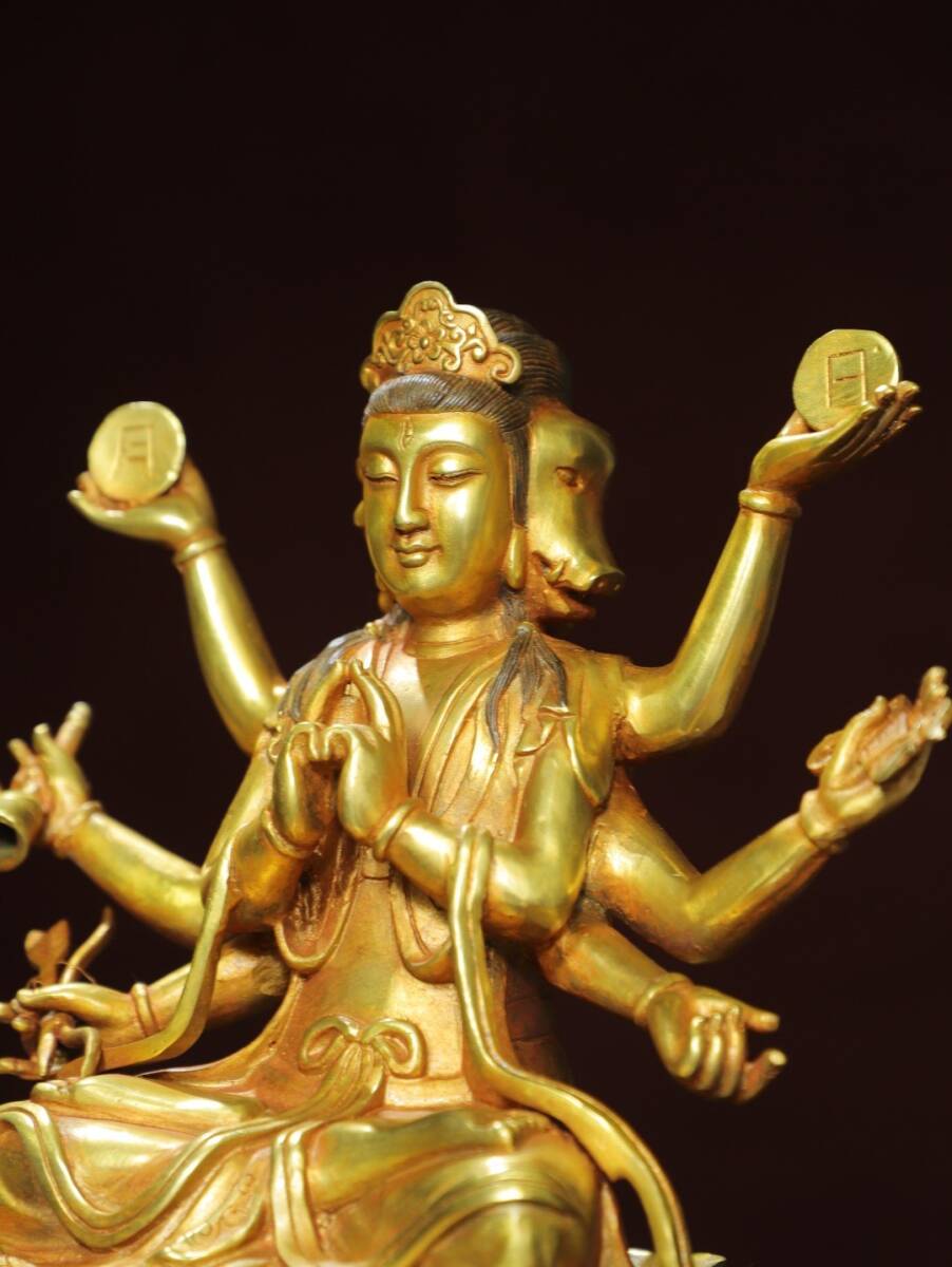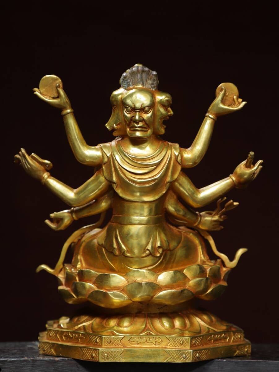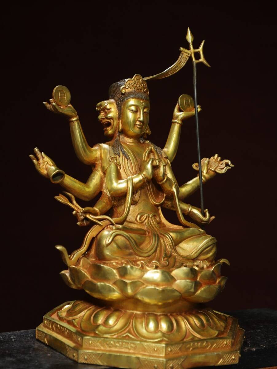 永し 明時代 古銅塗金 斗母元君 佛像 仏像 宗教 仏教古美術 極細工 古銅彫 置物擺件 古美術品 時代物 古董品 収集 旧家蔵出 中国唐物 A3