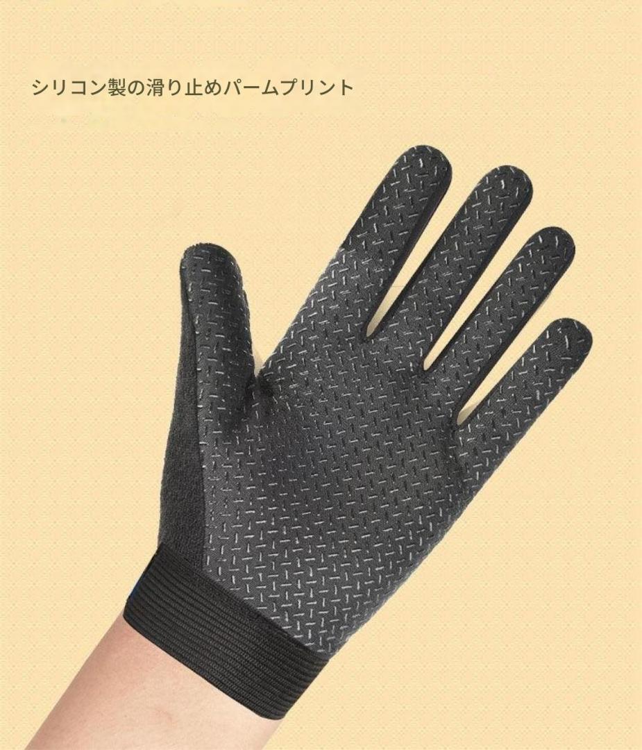 - シリコン製滑り止めパームプリント: 手のひら部分にシリコン製の滑り止め加工を施し、グリップ力を向上。自転車のハンドルやスポーツ用具をしっかりと握れます