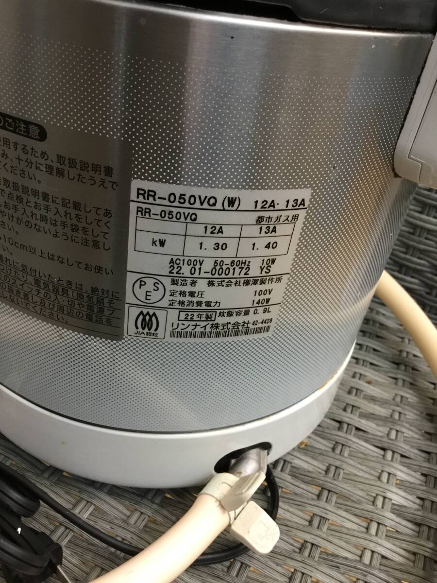 Rinnai リンナイ ガス炊飯器 都市ガス用 2022年製 5合炊き RR-050VQ ガスホース付き動作品