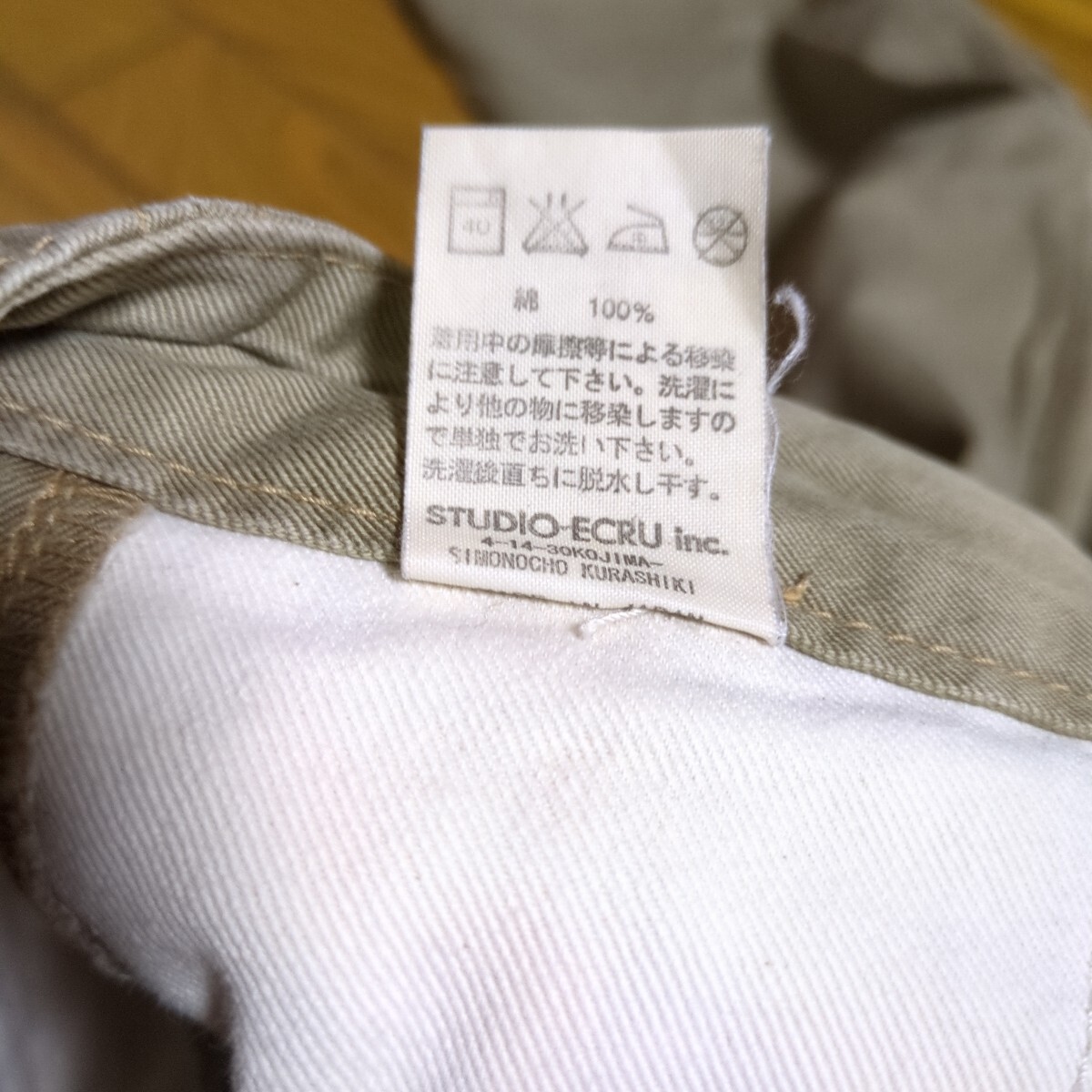 MADE IN JAPAN スタジオエクル カーキ ベージュ チノパン パンツ フュージョントラウザー S 日本製 ( FOB コッパン