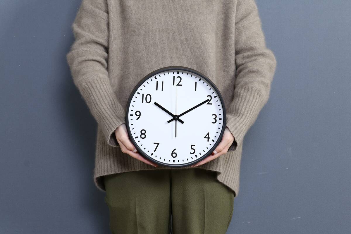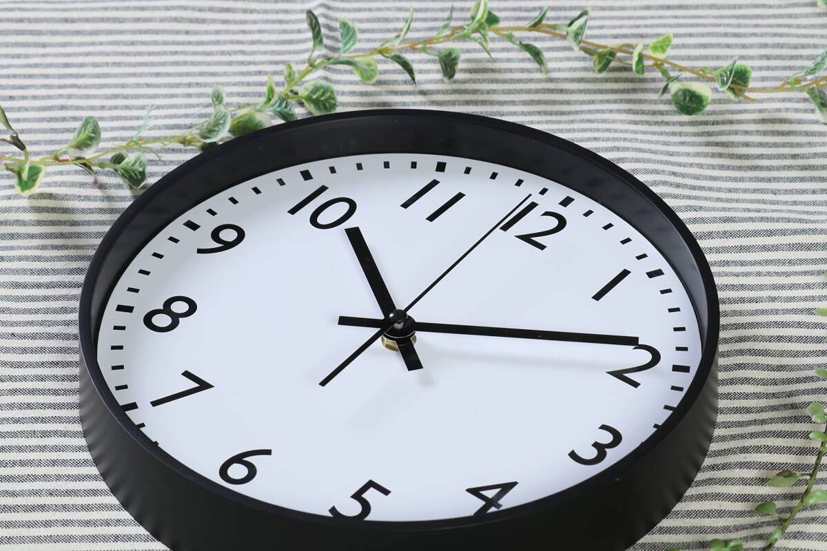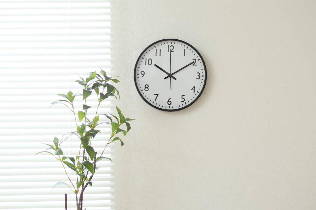 遠くからでも見やすいシンプルなデザインの掛時計。