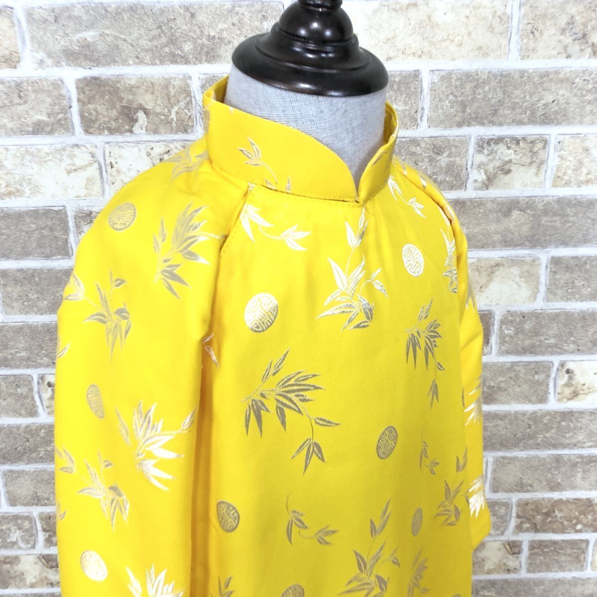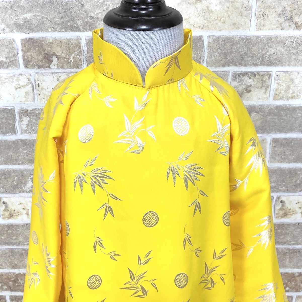 子供アオザイ上衣 【ネコポス可】5(110~120位) 黄 カラードレス 発表会 イベント 中古01925