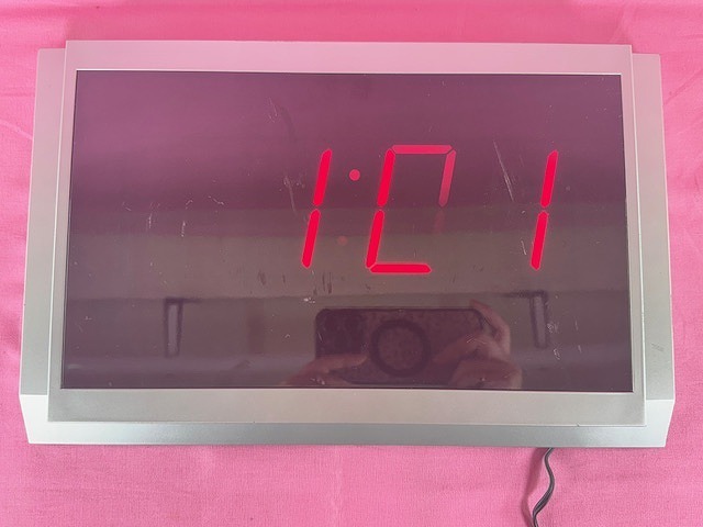 | ★商品説明★ | 【本体サイズ】 約30㎝×20㎝ 【状態】 ・長期保管につき傷や汚れ等があります。 ・表示面に傷があります。 ・動作確認済みです。 ・時計表示に途切れ等はありませんでした。 |