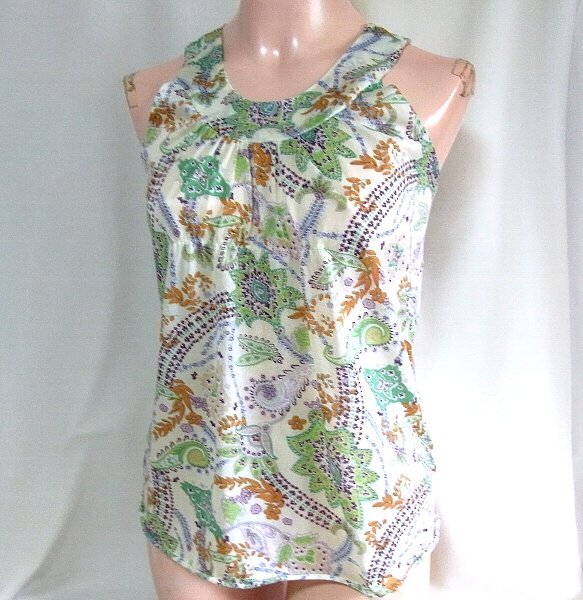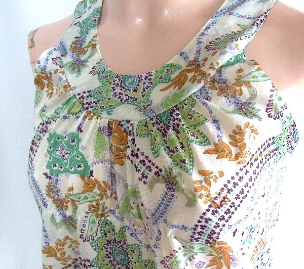★☆黄緑花デザイン柄うす透けタンクトップ☆★