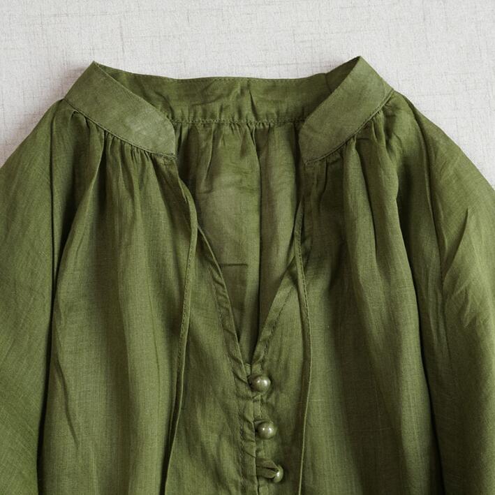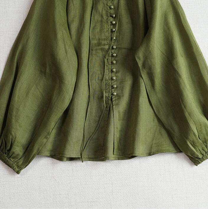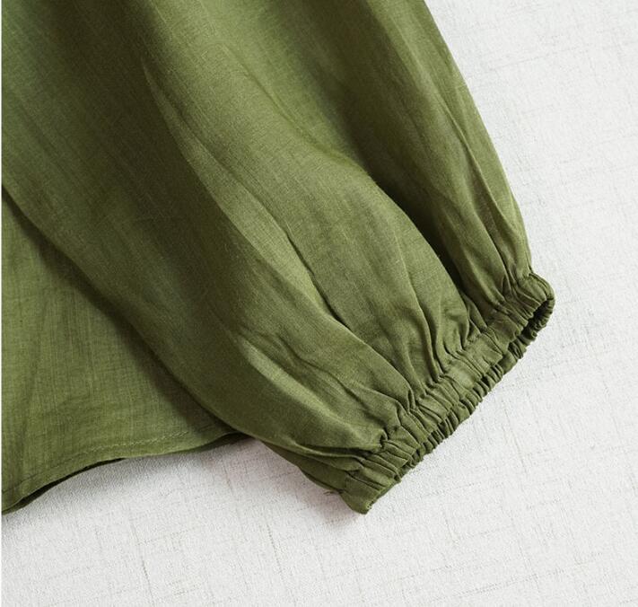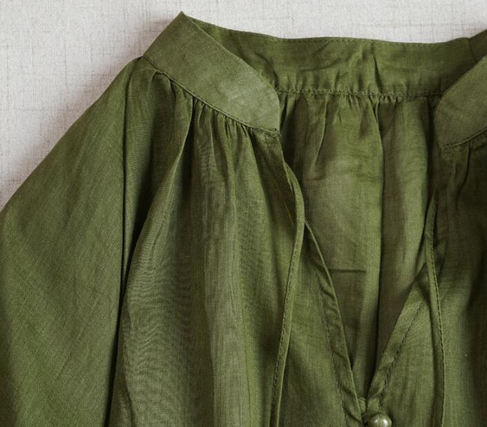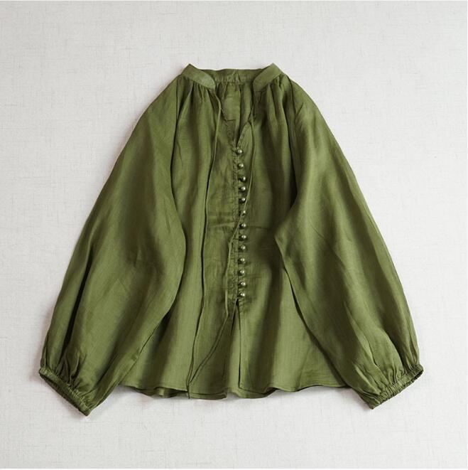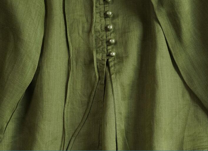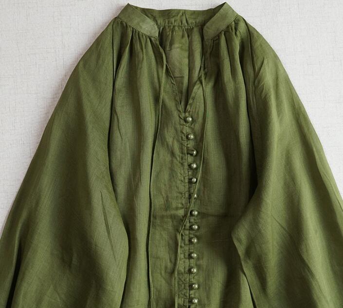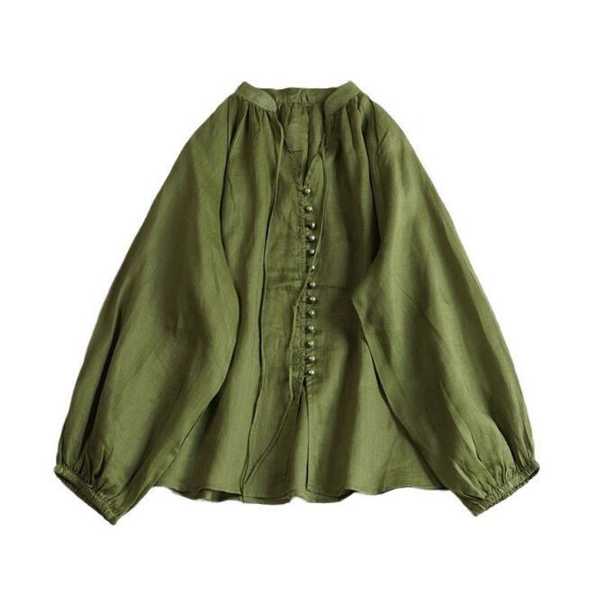 新品ワイシャツ チュニック ゆったり フリーサイズ ナチュラル 苧麻100% 肌触りいい グリーン