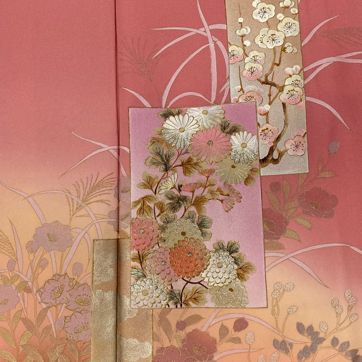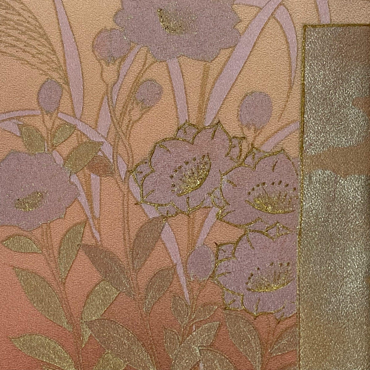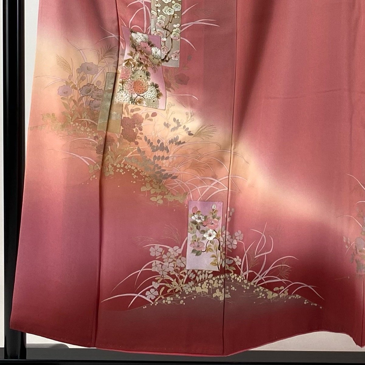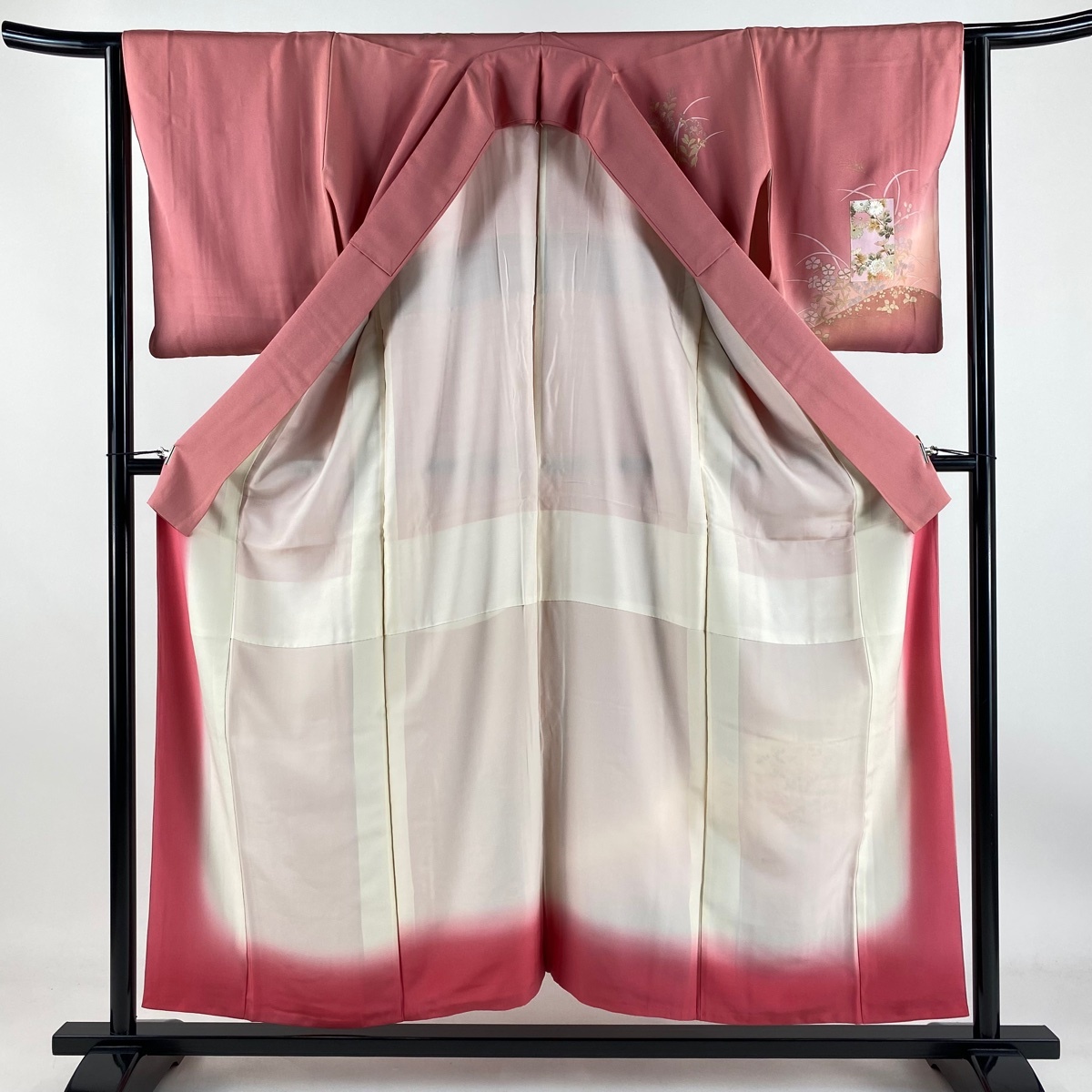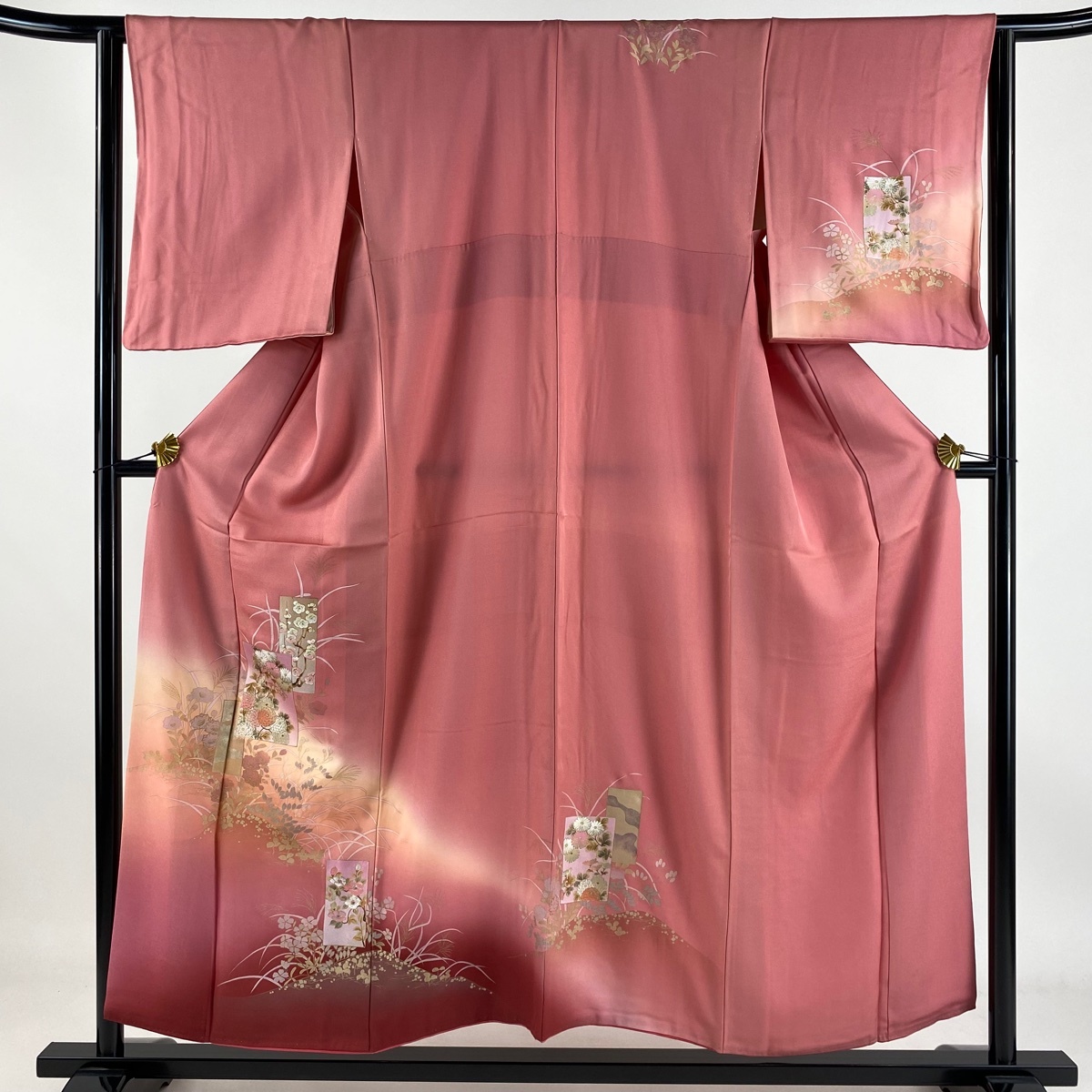 | 付下げ 優品 短冊 草花 ラメ 金彩 ピンク 袷 身丈155 裄丈63.5 S 正絹 【中古】 |