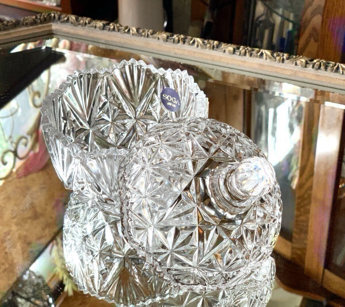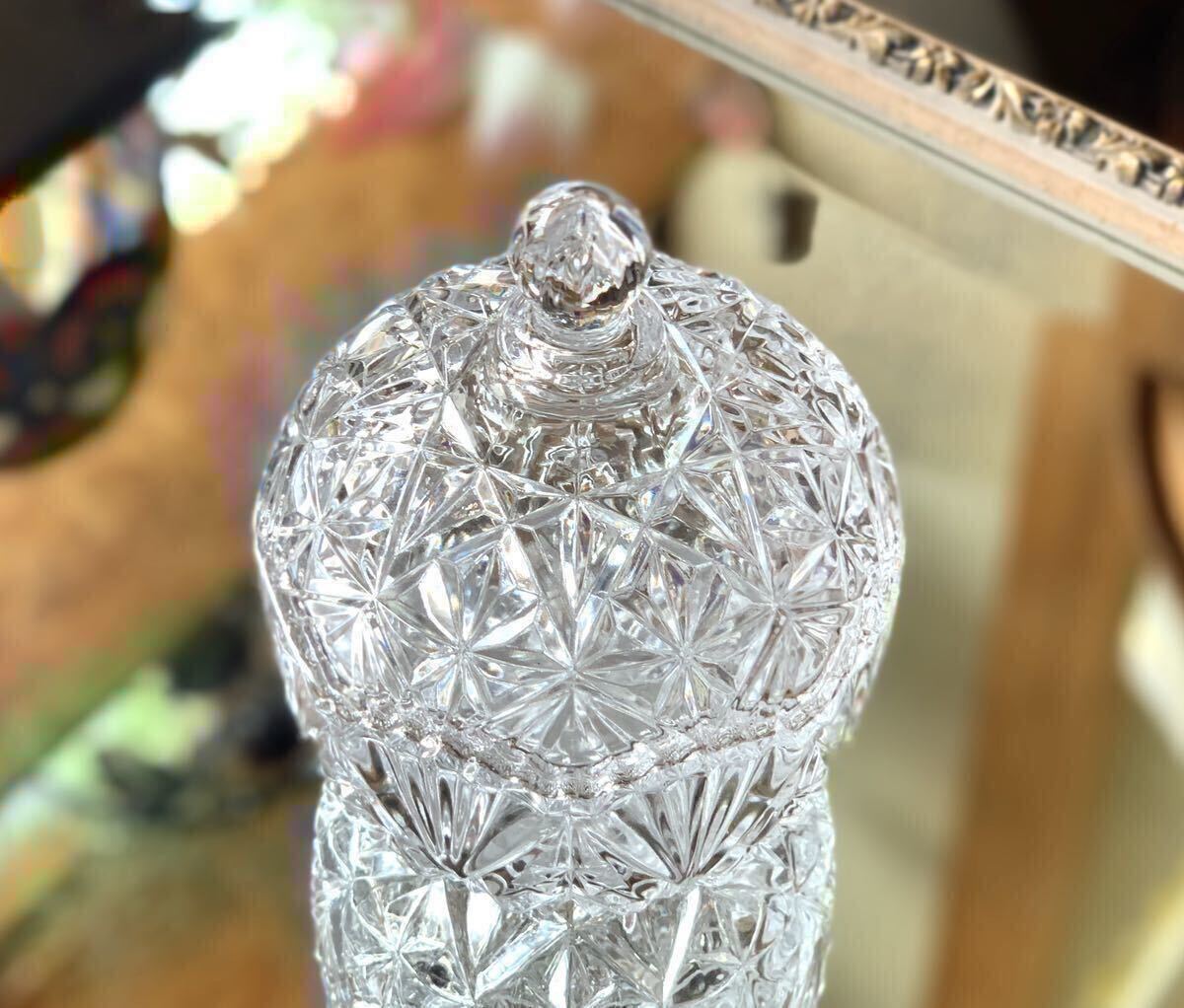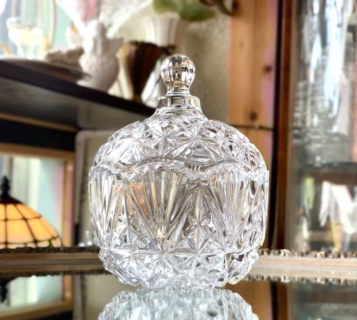 細やかなカットが施され蓋と容器のジョイント部分の波型のフォルムがとても豪華なキャンディボックス