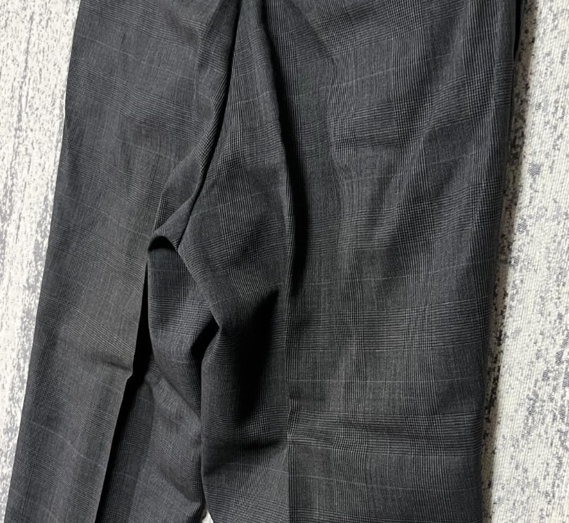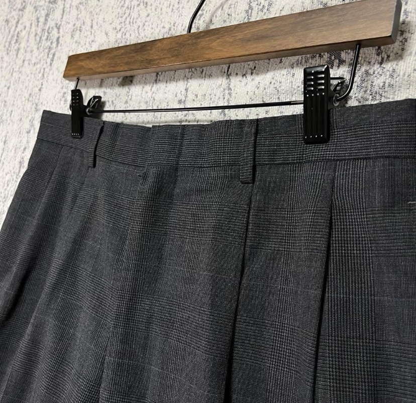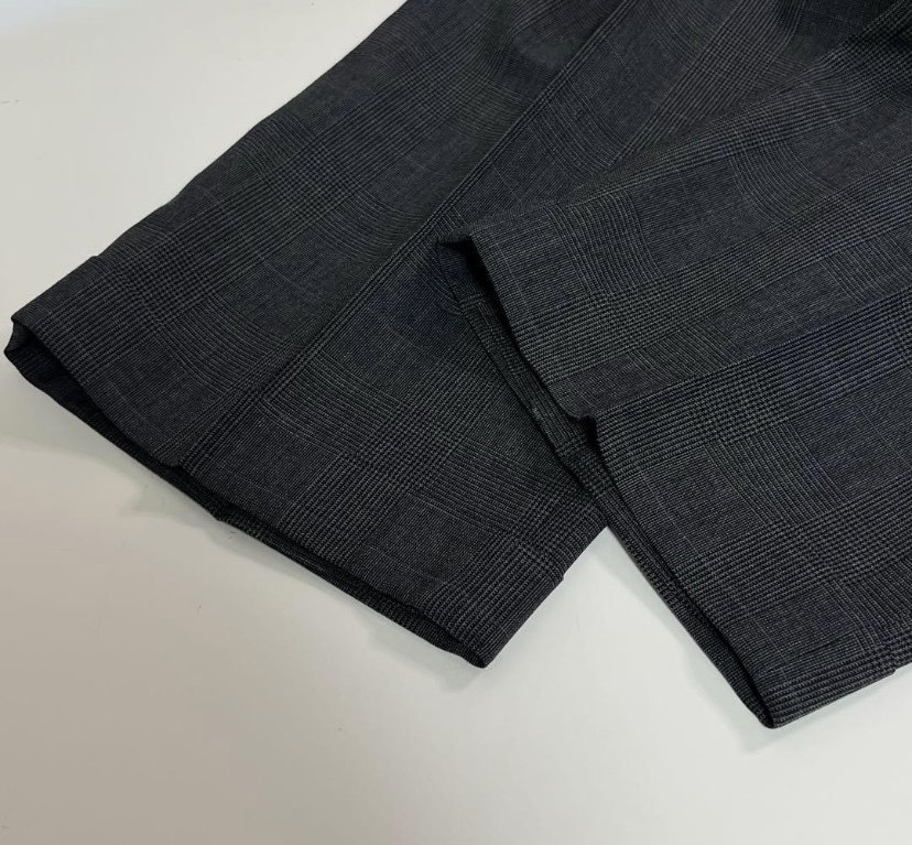 グレンチェック柄の生地です。グレー系の色合いは、様々なトップスと合わせやすいです。