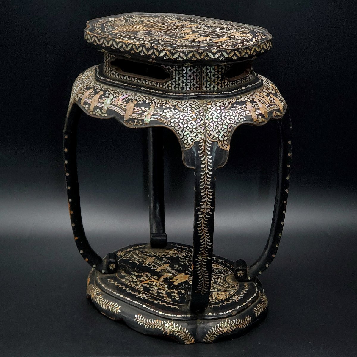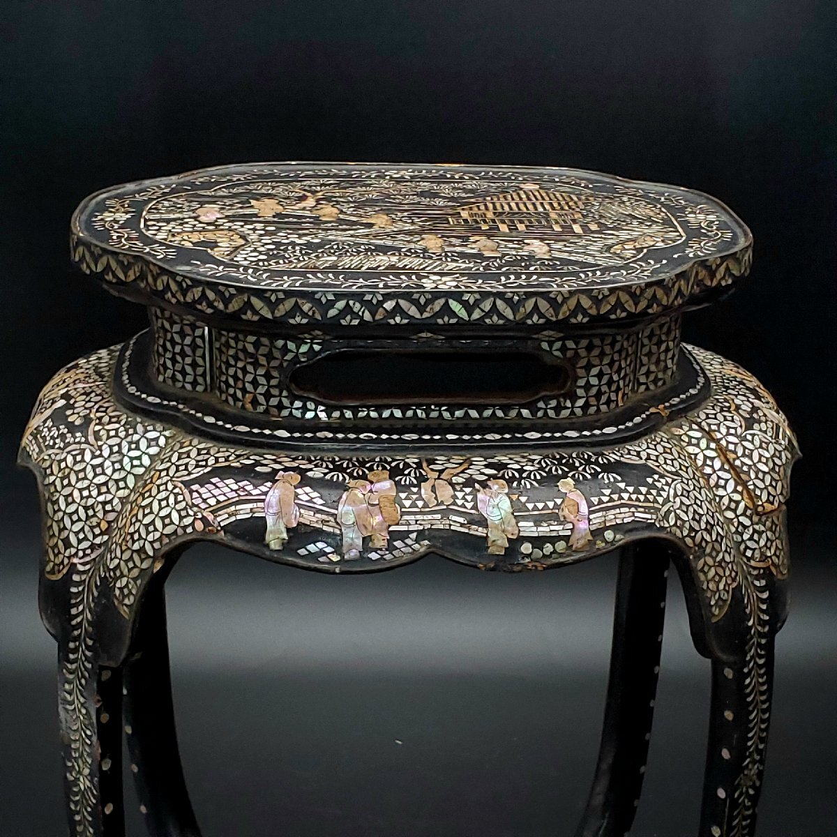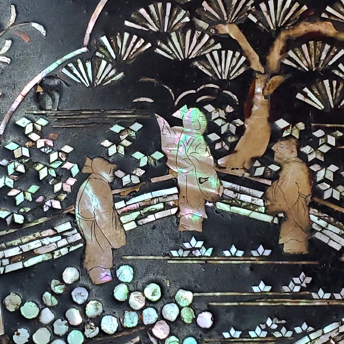 【商品説明】:年代物のため全体的に経年による螺鈿の傷みがあり、足部分に割れなどダメージがございます(写真10枚目)。古いお品ですので画像にて状態をご確認いただき十分ご納得の上で入札をお願いいたします。