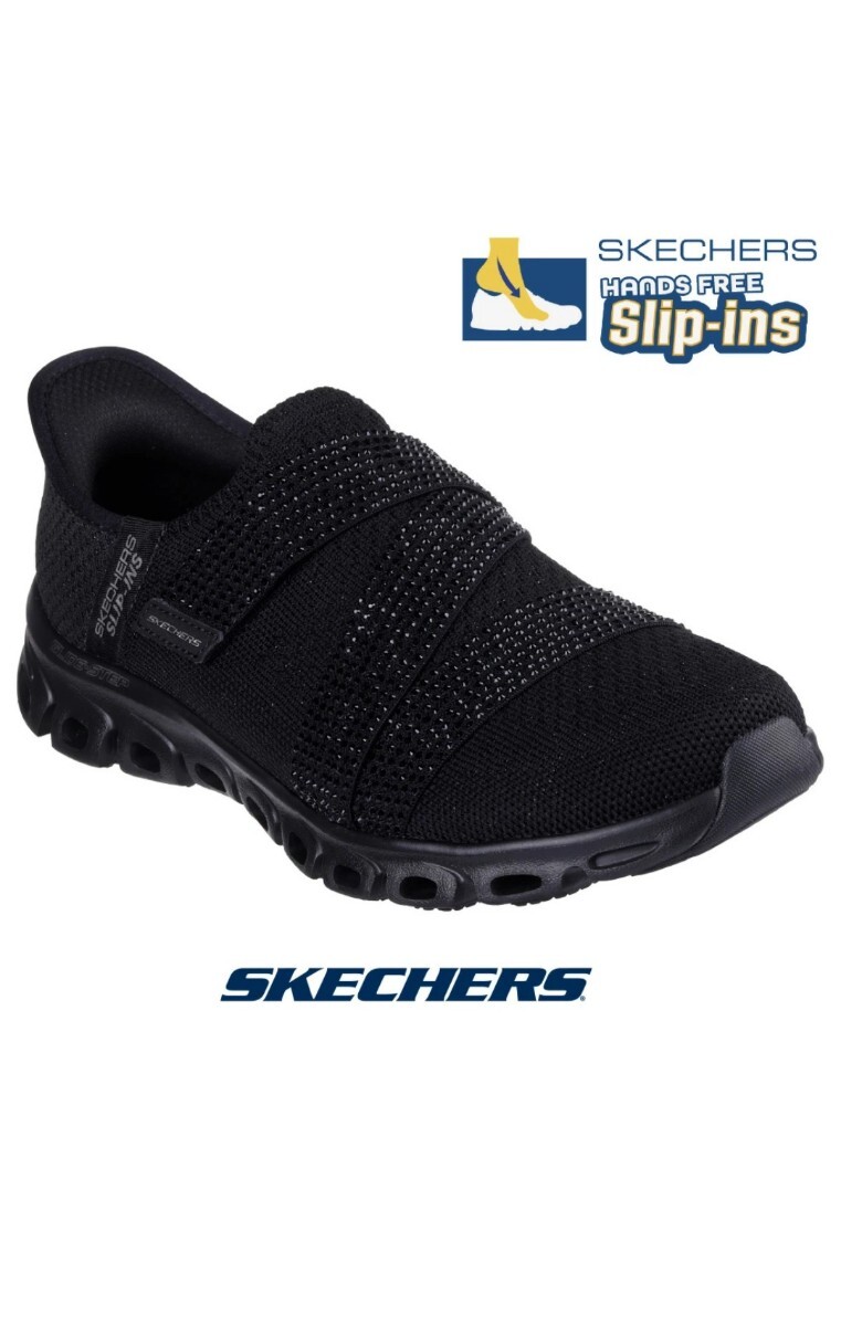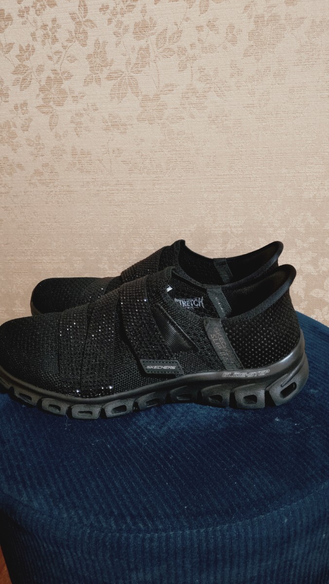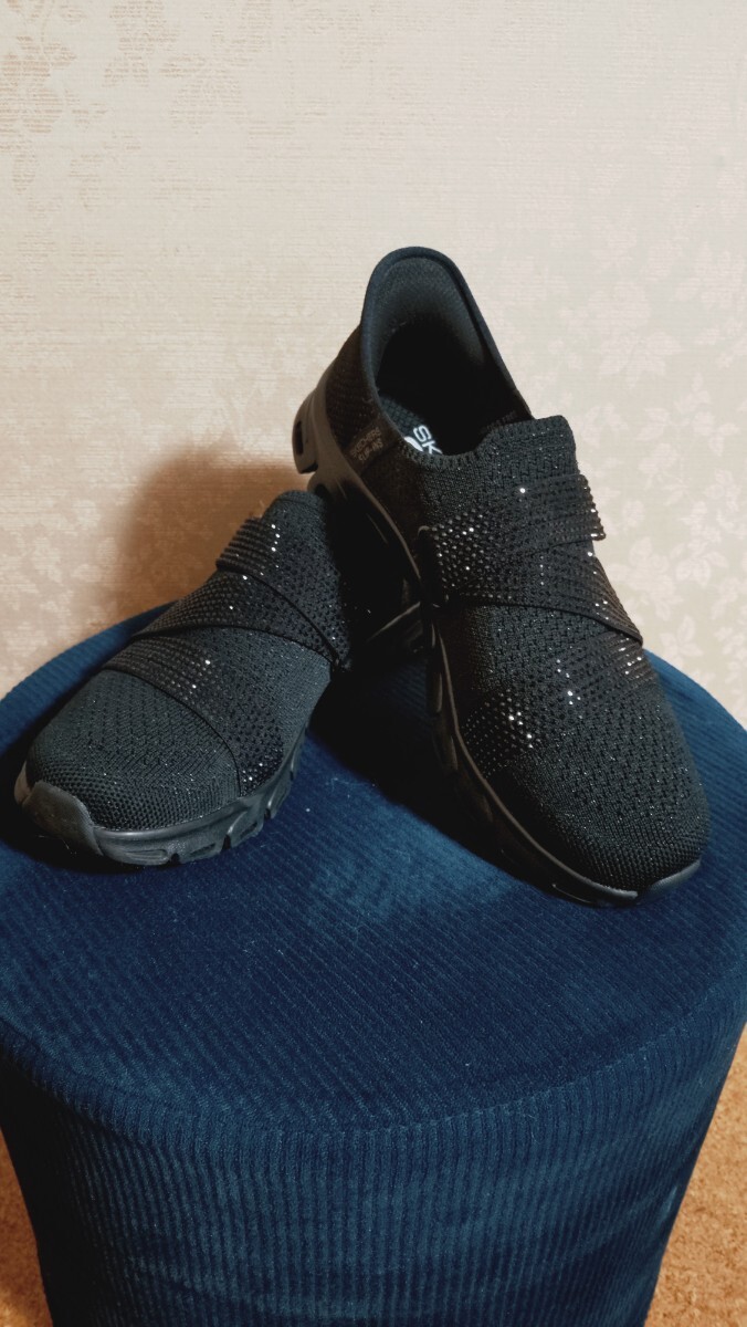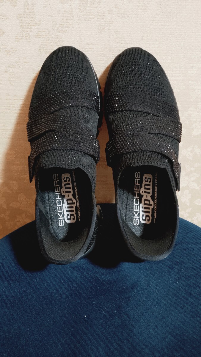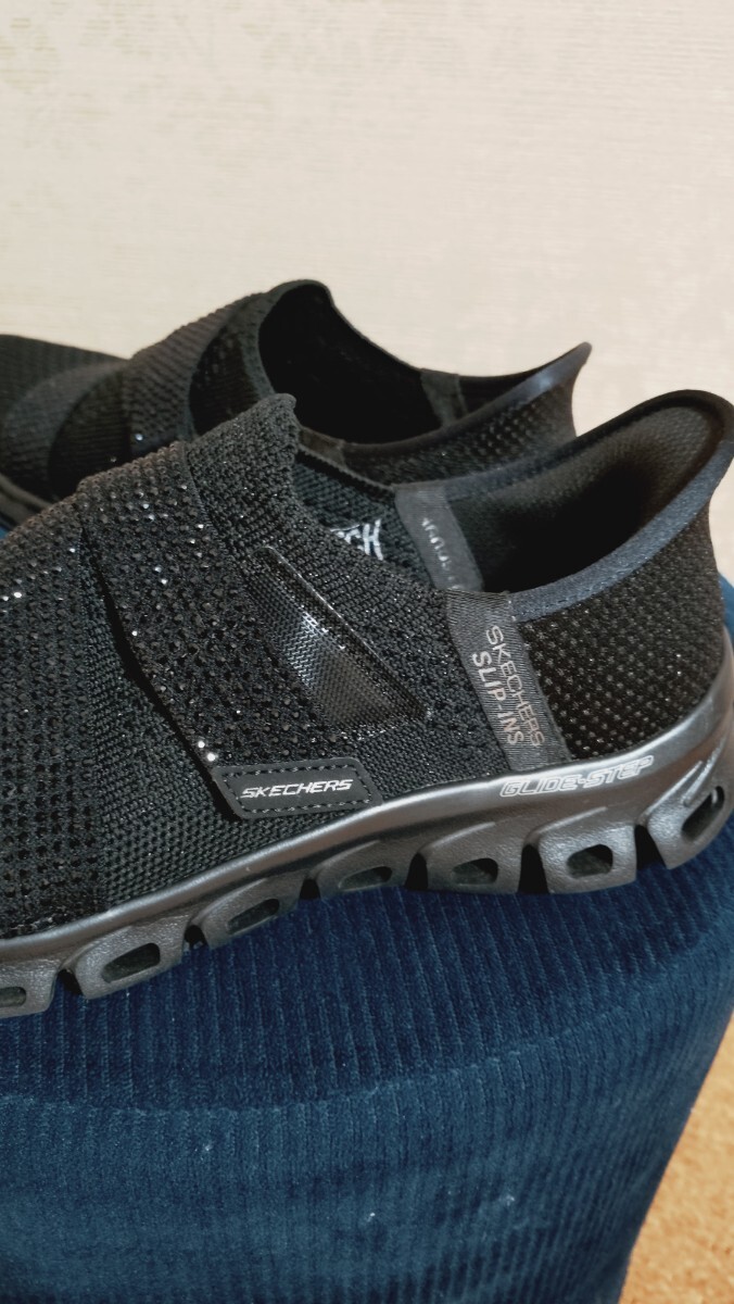 黒グライドステップ・ハイシャイン新品同様SKECHERSスケッチャーズスニーカースリップインズ 現行品スリッポンGLIDE-STEP ハンズフリー