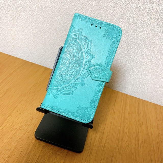 エンボス加工スマホケース 手帳型 iPhone SE2/SE3 グリーン