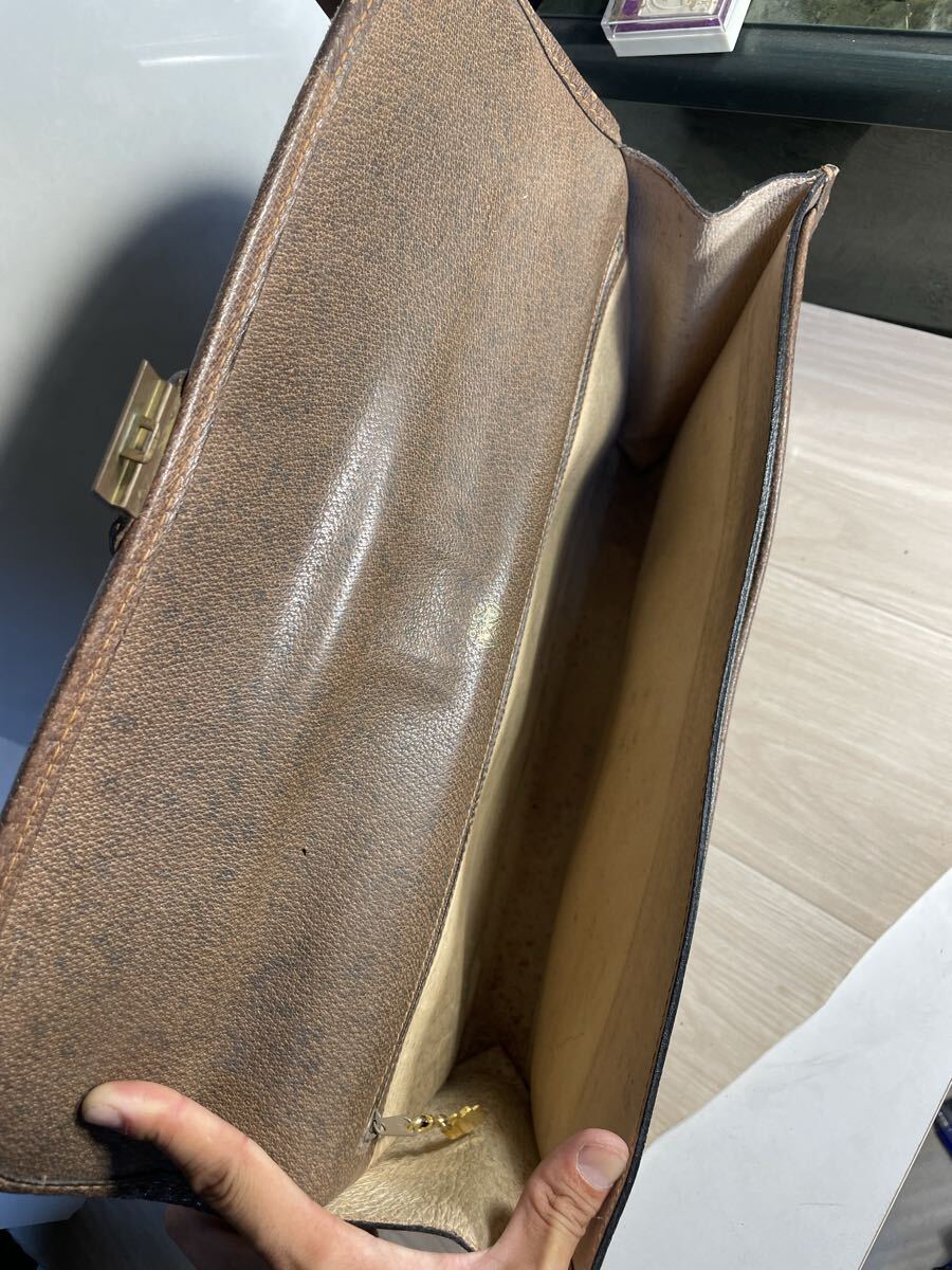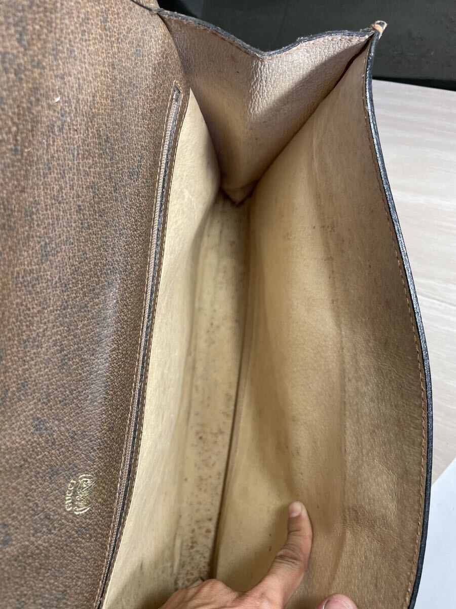 ヴィンテージ品のため全体に経年によるスレや内側のシミ等ございますが、使用には問題ありません。長い年月を経たGUCCIならではの重厚な雰囲気を楽しめるお品です。