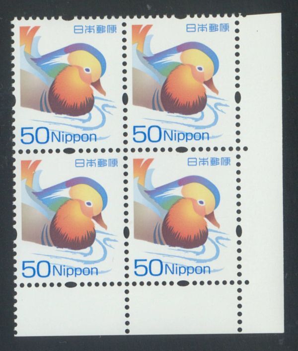新会社発足後・オシドリ50円・楕円目打・田型コーナー ☆ 未使用