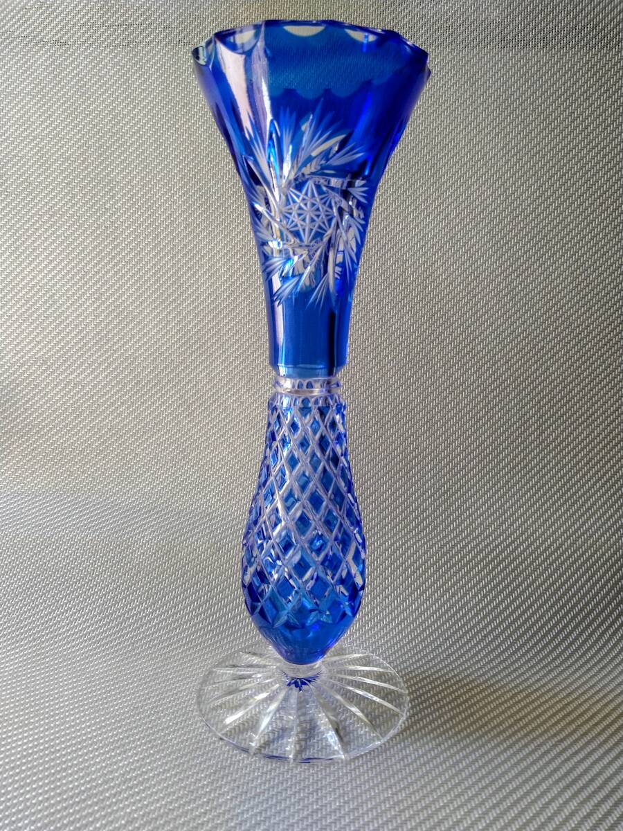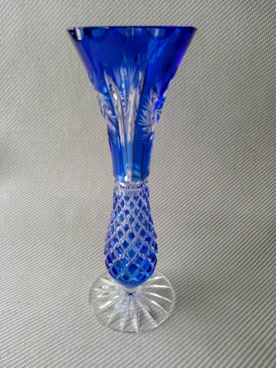 フラワーベース 花瓶 クリスタル ガラス カット ブルー 青 切子 一輪挿し カメイガラス
