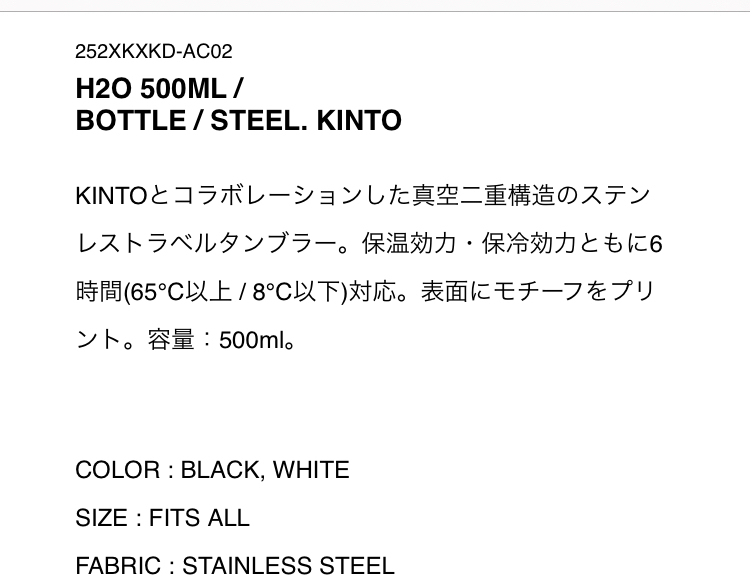 商品名: H2O 500ML / BOTTLE / STEEL. KINTO BLACK FITS ALL