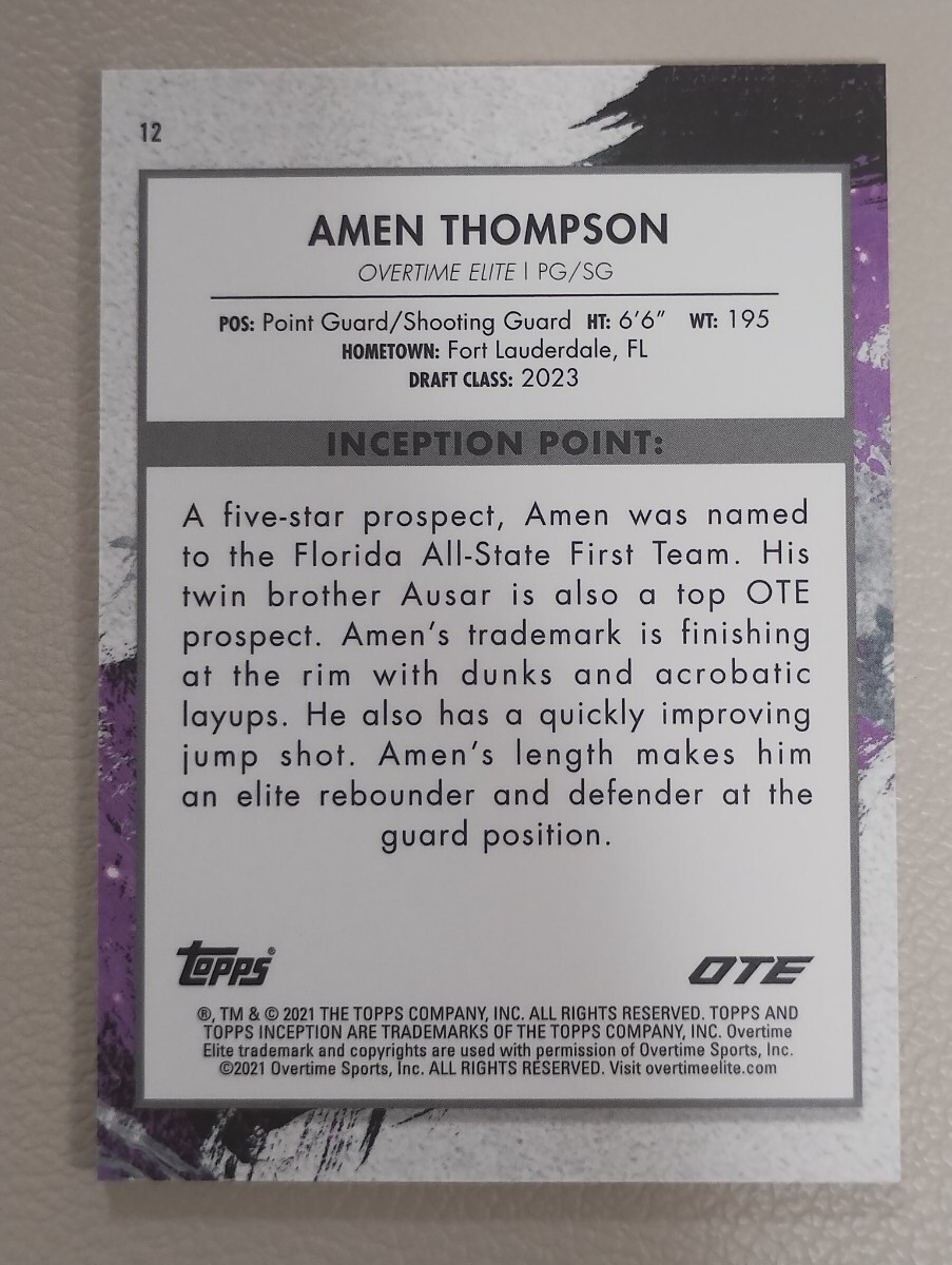 【RC】NBA 2021-22 TOPPS INCEPTION OVERTIME ELITE アメン トンプソン AMEN THOMPSON ルーキーカード ROOKIE #12