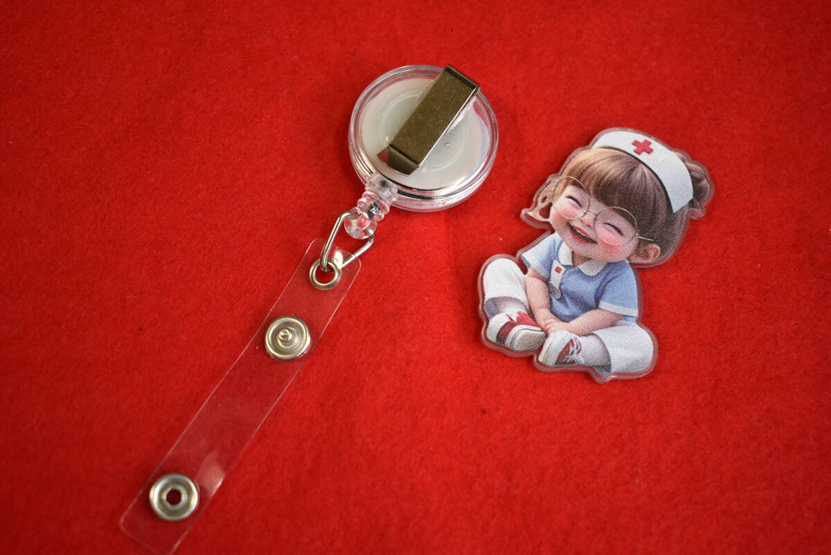 ◎看護師IDホルダー ニコッと癒し系 女の子のキーホルダー アクリルキーホルダー