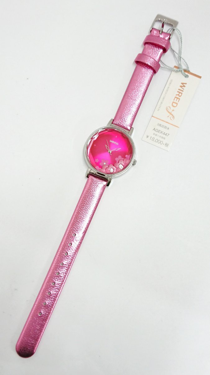 未使用!大きめフェイスが「映え」メタリック!!セイコーウォッチ WIRED f/ワイアードエフ クォーツ AGEK447 VJ21-KDW0 レディース 腕時計*